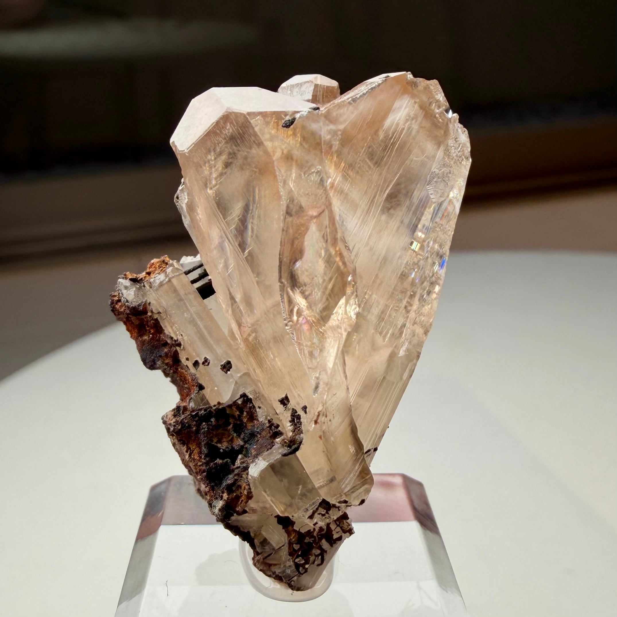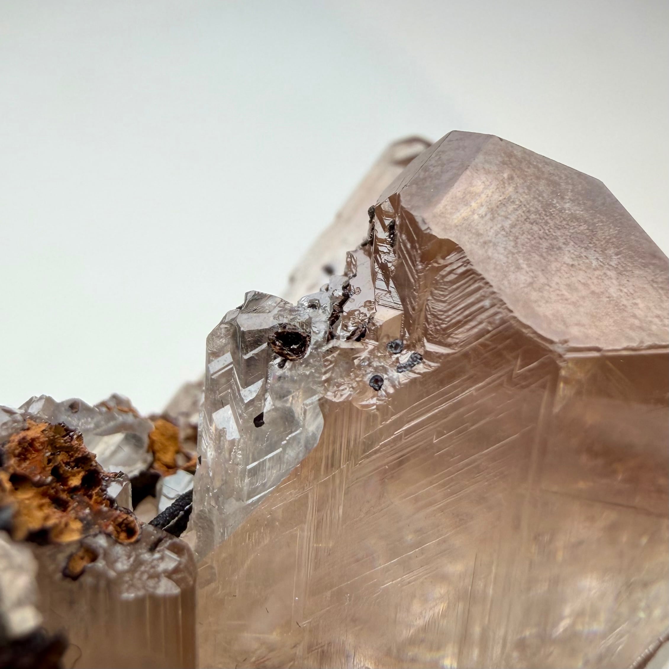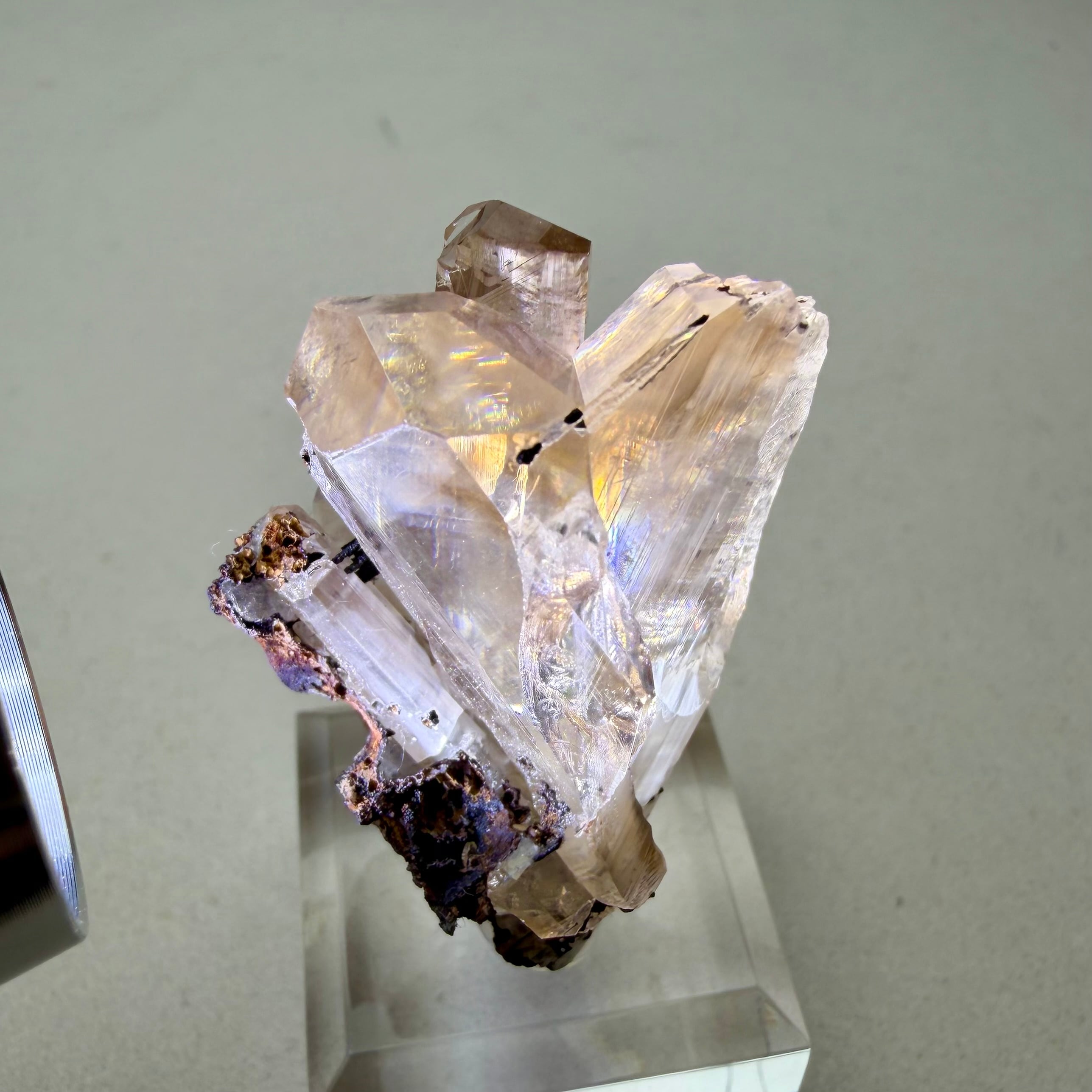 また、画像1枚目の角度では美しい広がりを見せる双晶が目に入りますが、その逆の面には少し珍しい柱状にしっかりと伸びる結晶も見られ、そちらからの角度も非常に魅力的です。