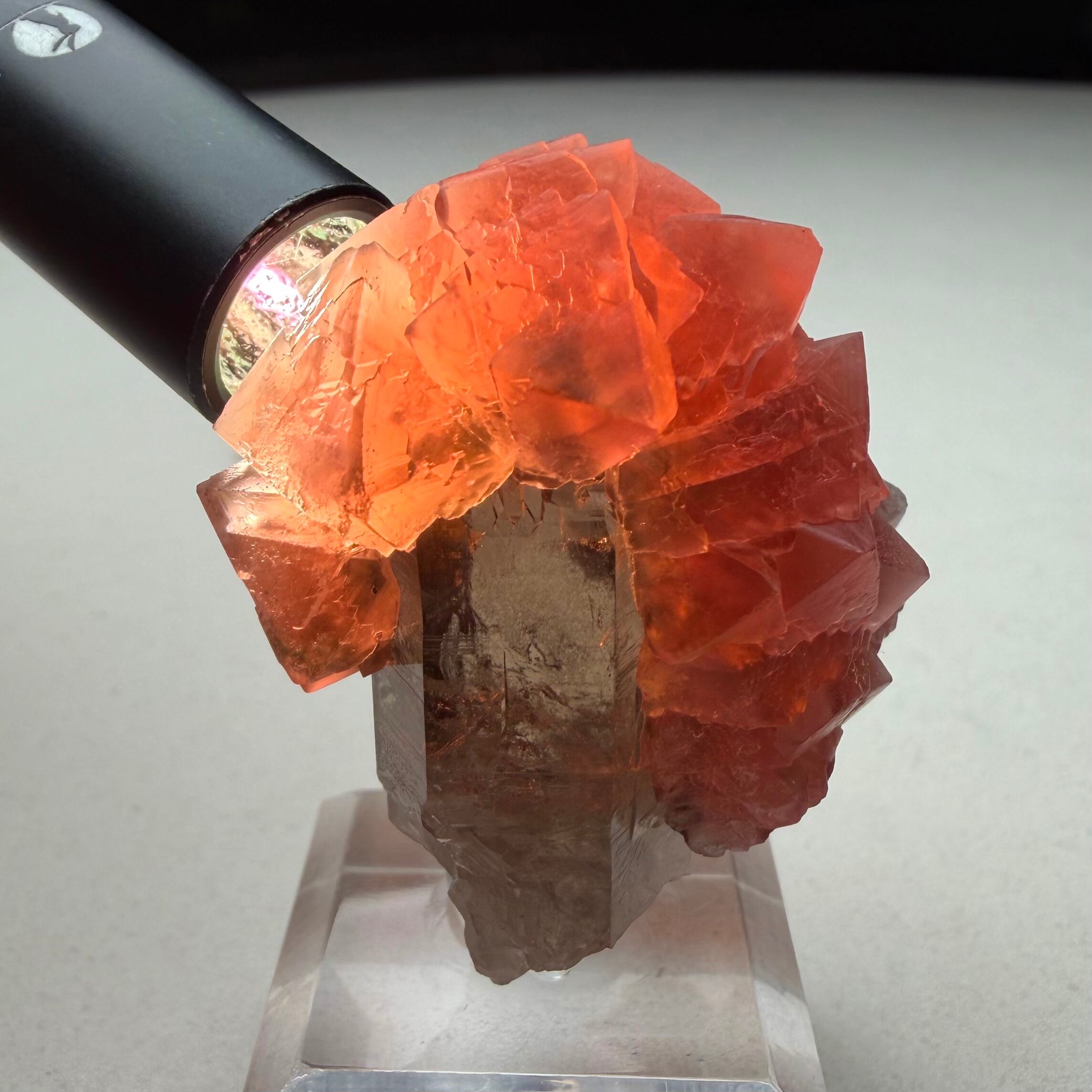 当該エリアの中でも濃いピンク、レッドに近い発色のフローライトで知られるPointe Kurtzで産したコンビネーションで、フローライトとスモーキークォーツのどちらも状態は良好です。