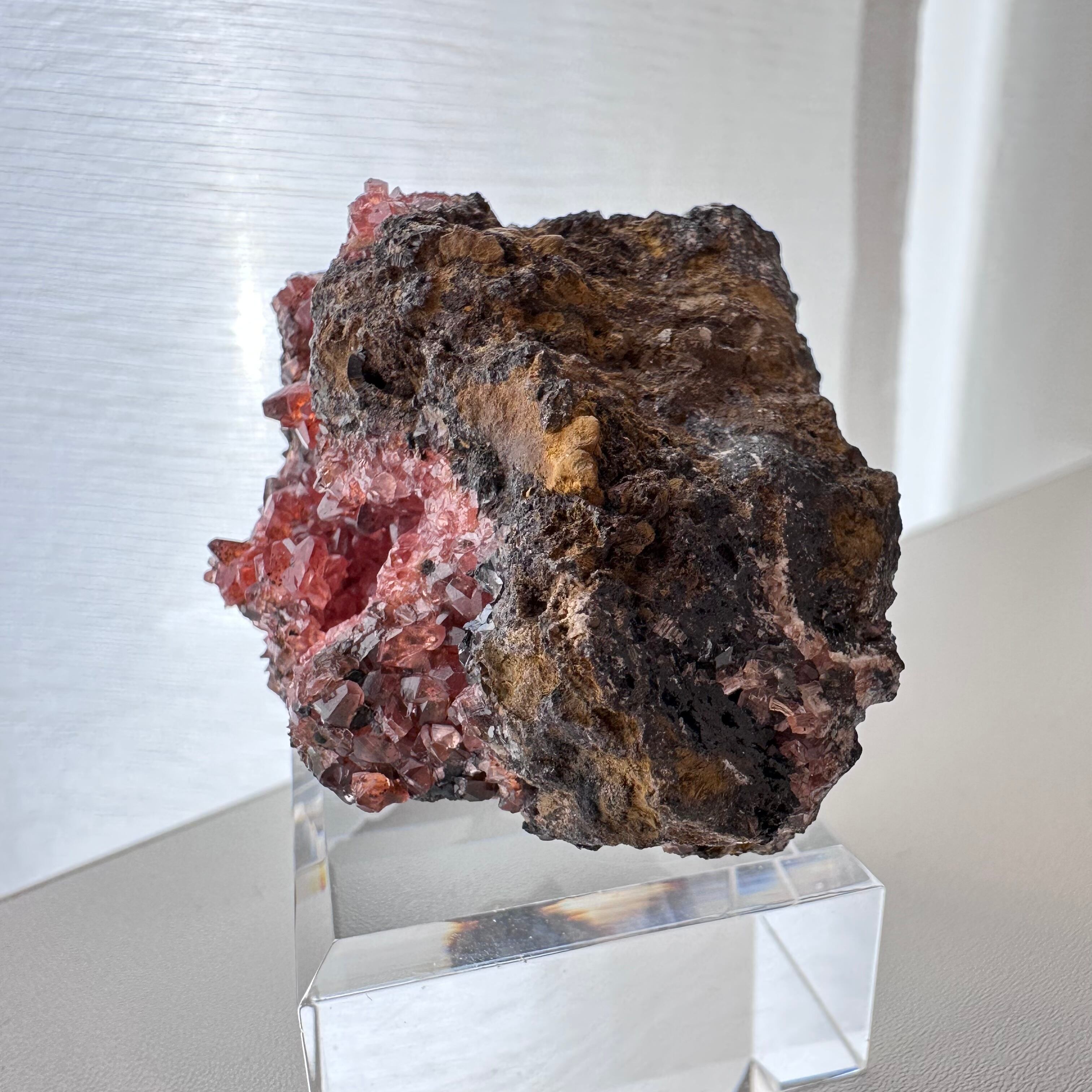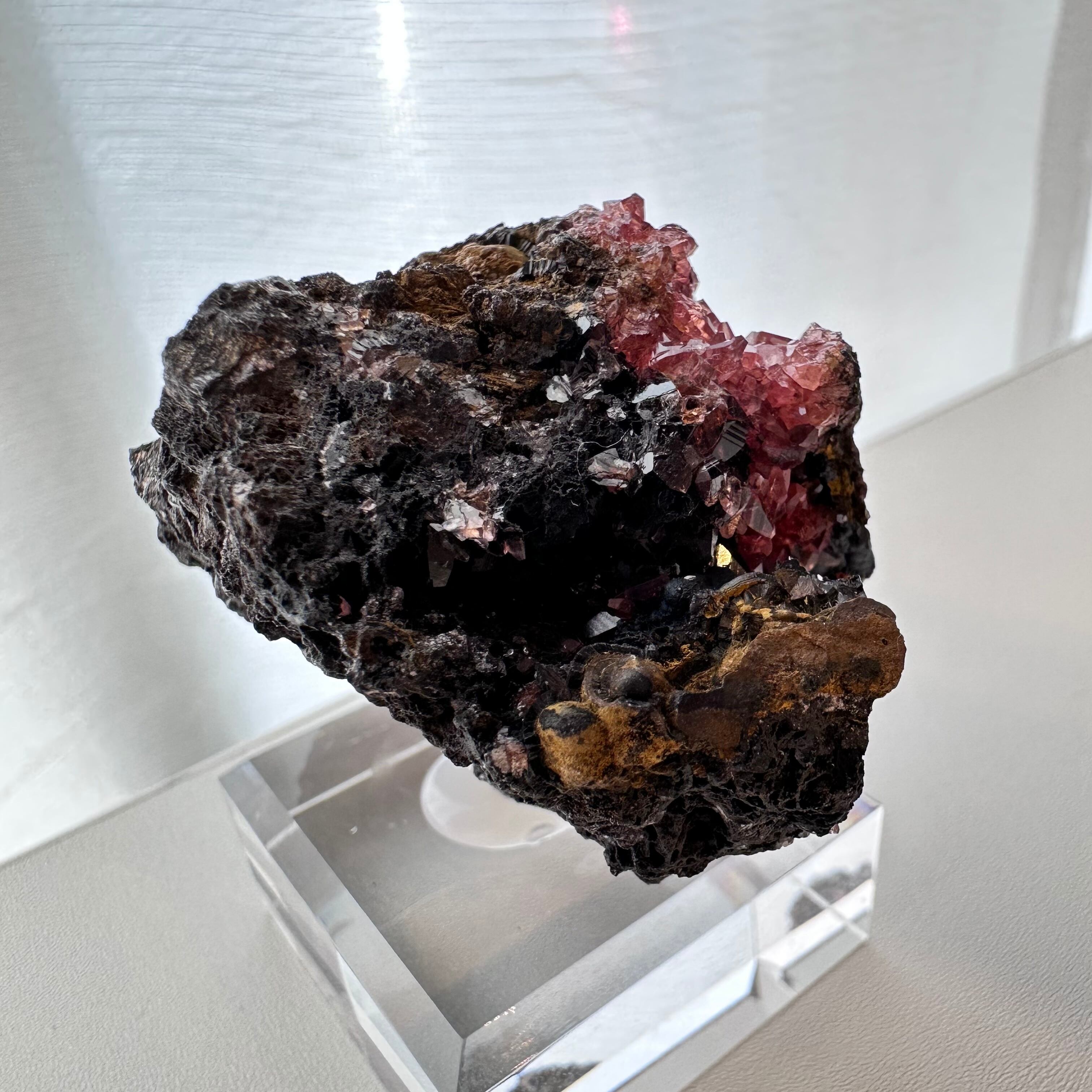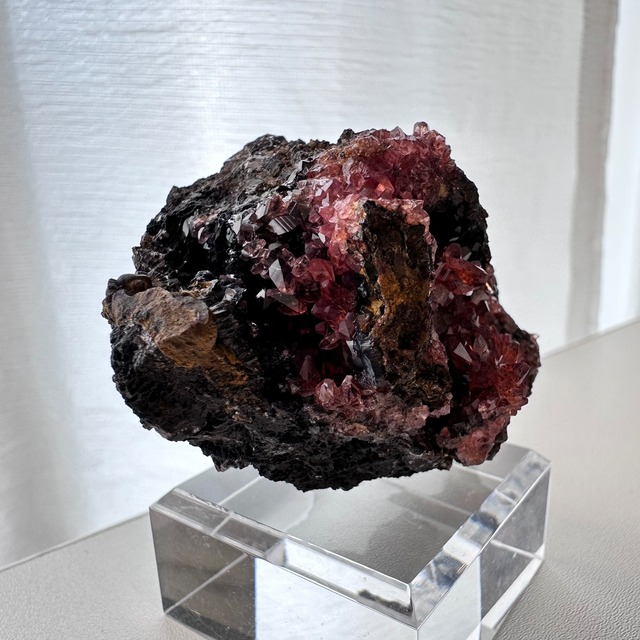一部の結晶にはマンガナイトと思しき斑点が見られ、母岩の形状や色味もユニークさがあり、見所の多い標本かつドイツ産の標本としてトップクラスにあると言える標本です。