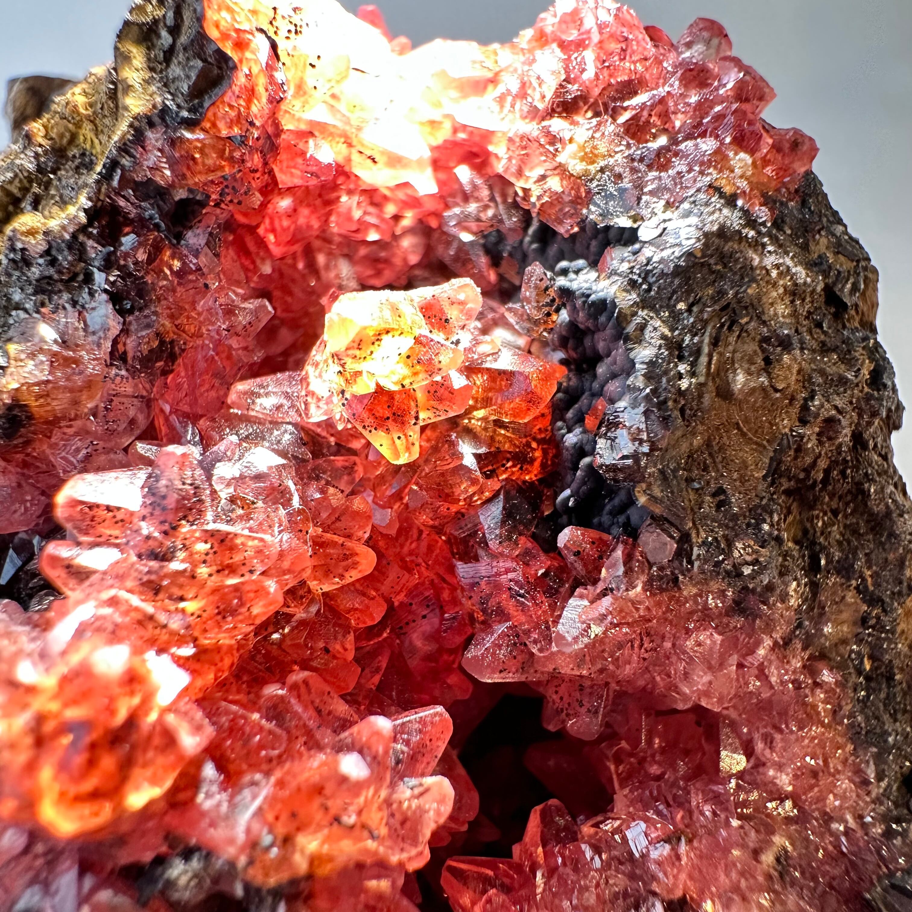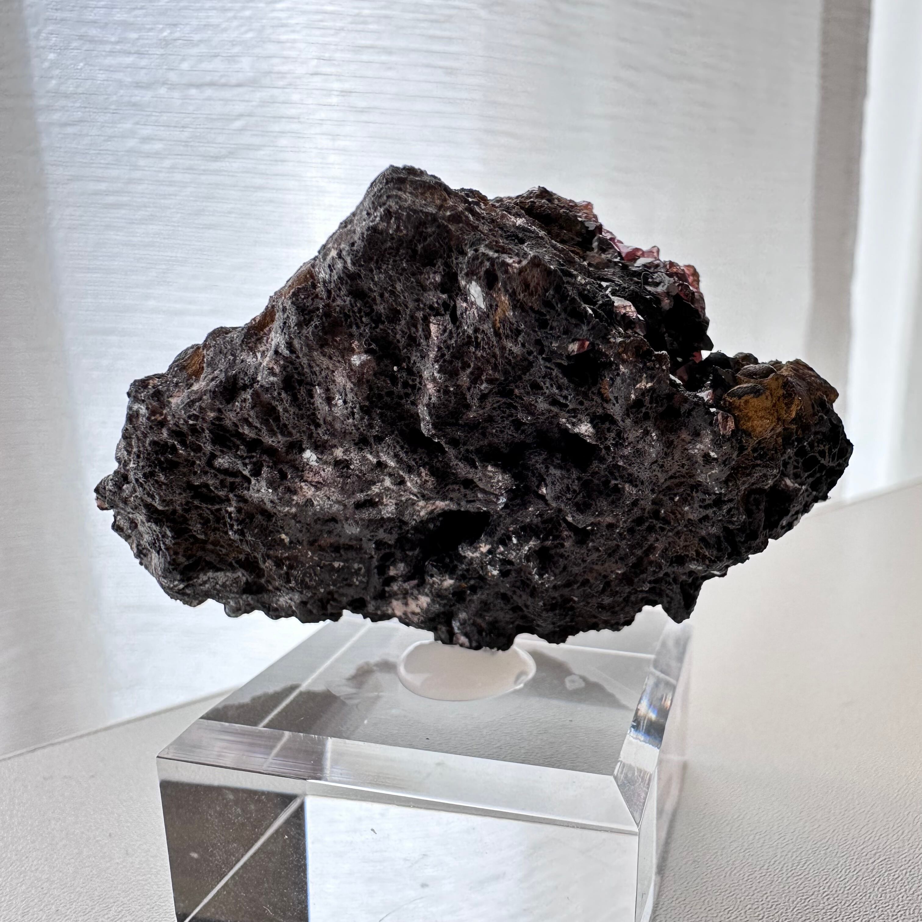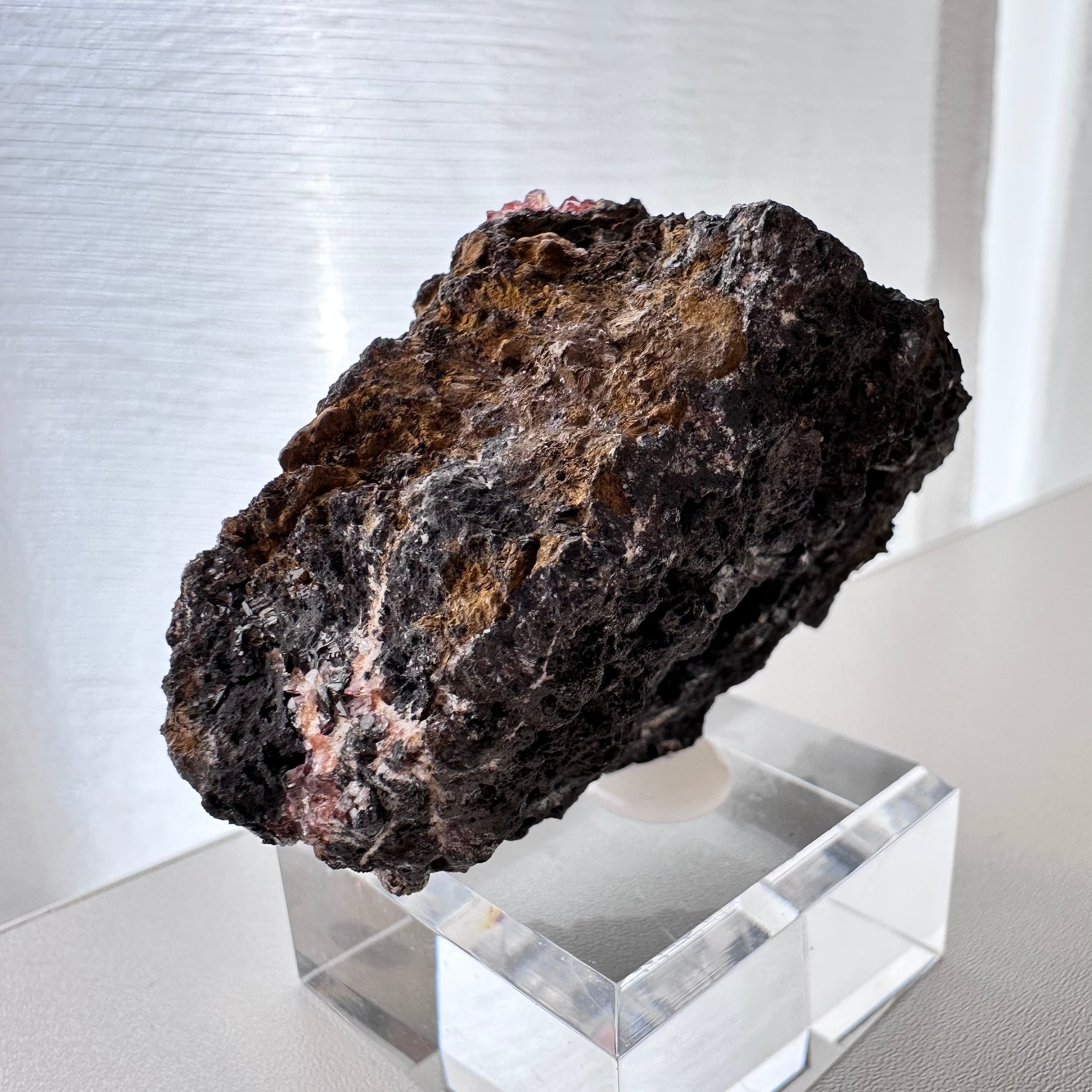 一部の結晶にはマンガナイトと思しき斑点が見られ、母岩の形状や色味もユニークさがあり、見所の多い標本かつドイツ産の標本としてトップクラスにあると言える標本です。
