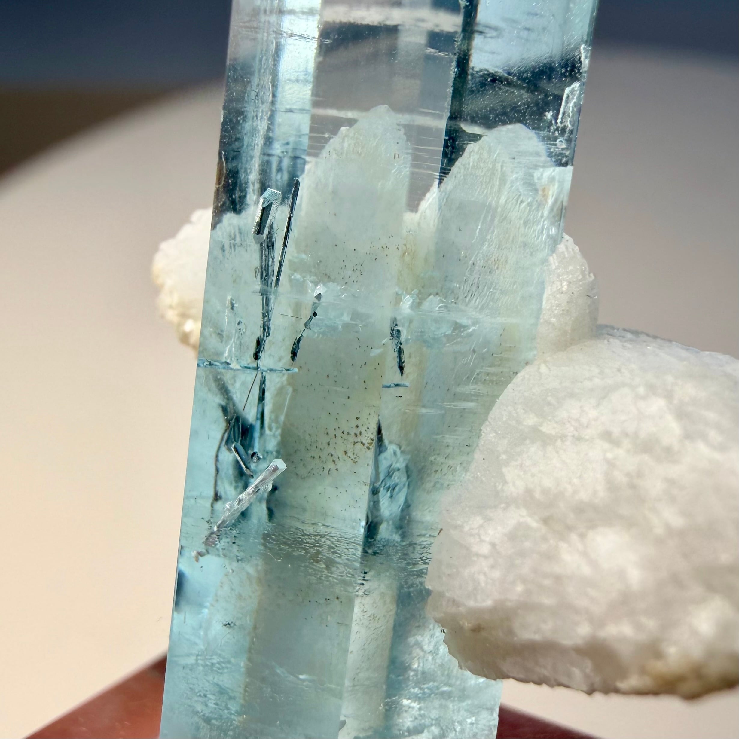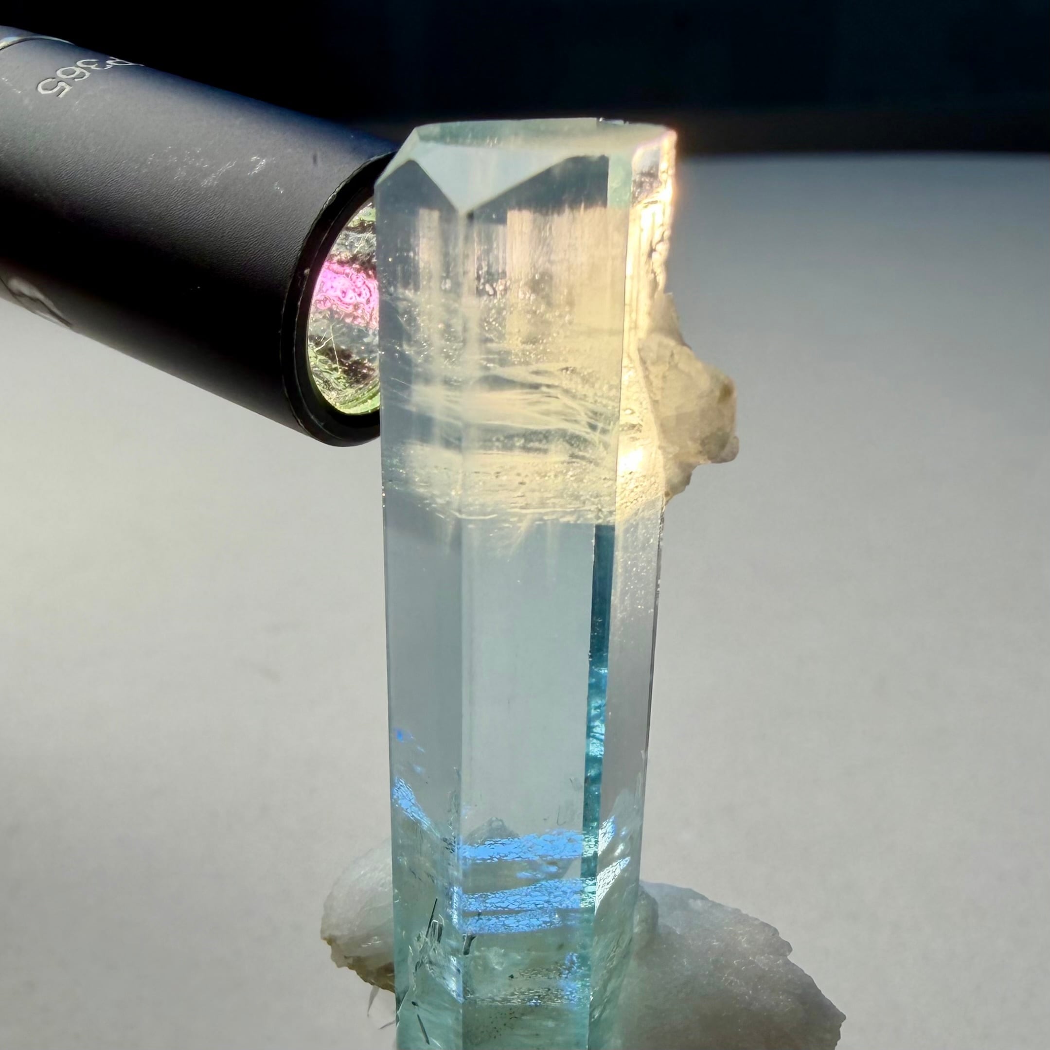 サイズ感や発色、テリや透明感等々、そもそもの流通が少ない当該産地のものとして最良に値する標本で、シルキーなインクルージョンが層になっているトップ辺りとクリアなボディとの対比も非常に魅力的です。