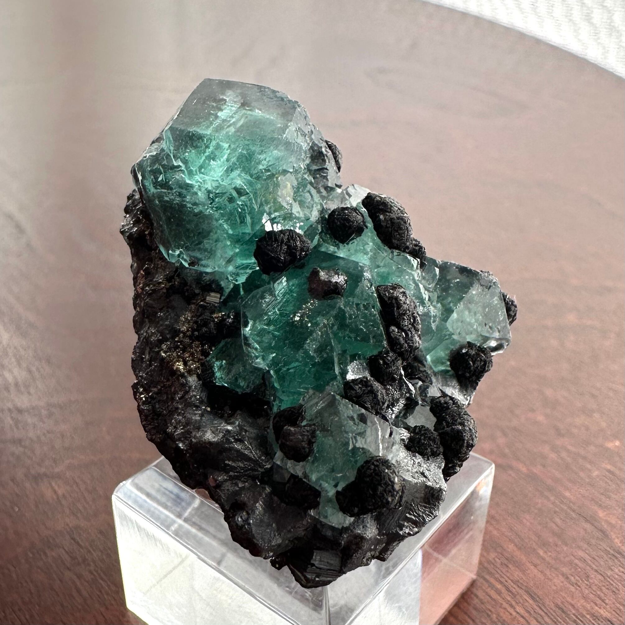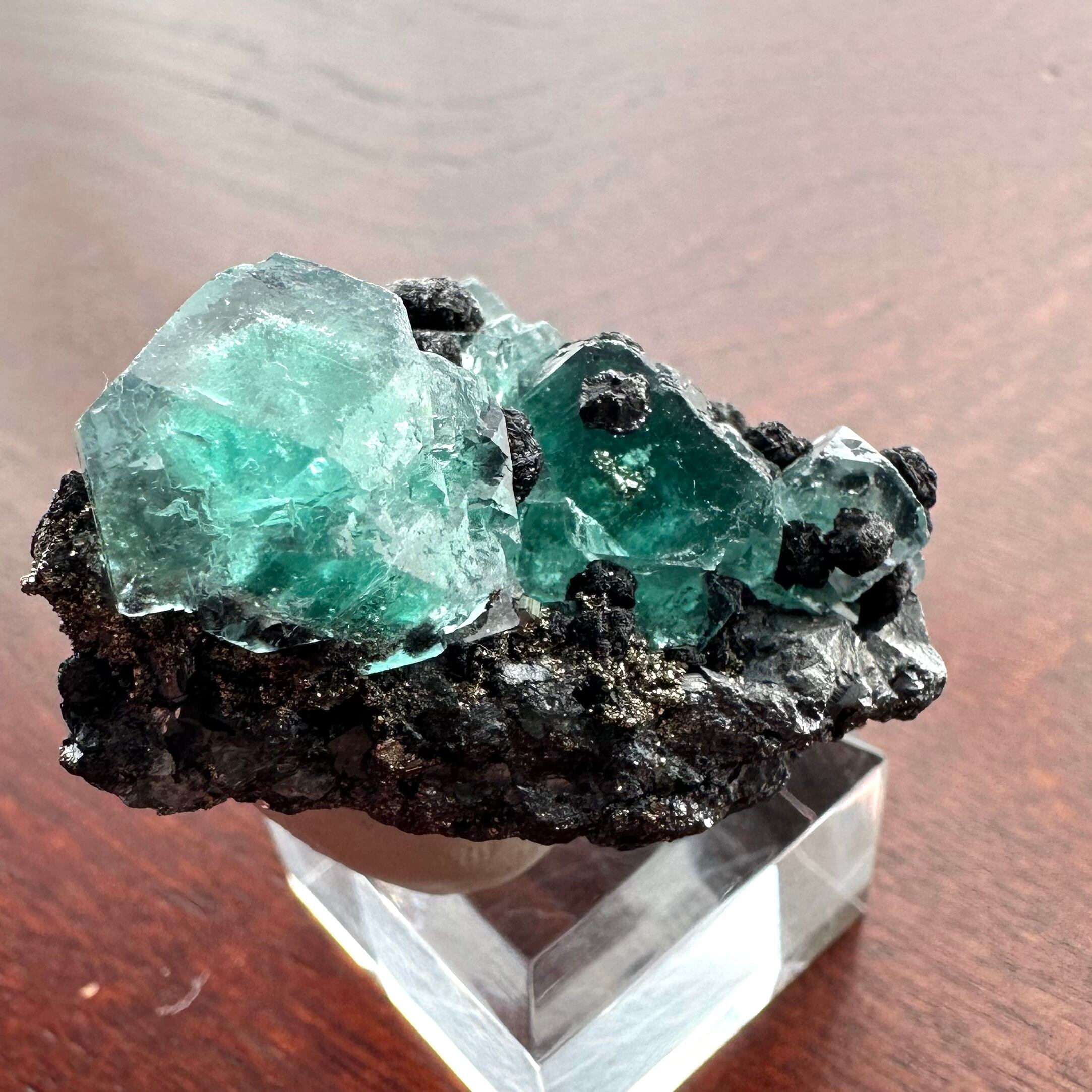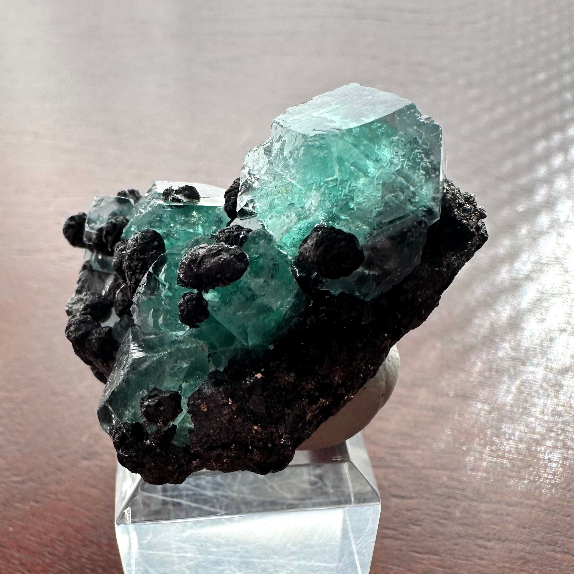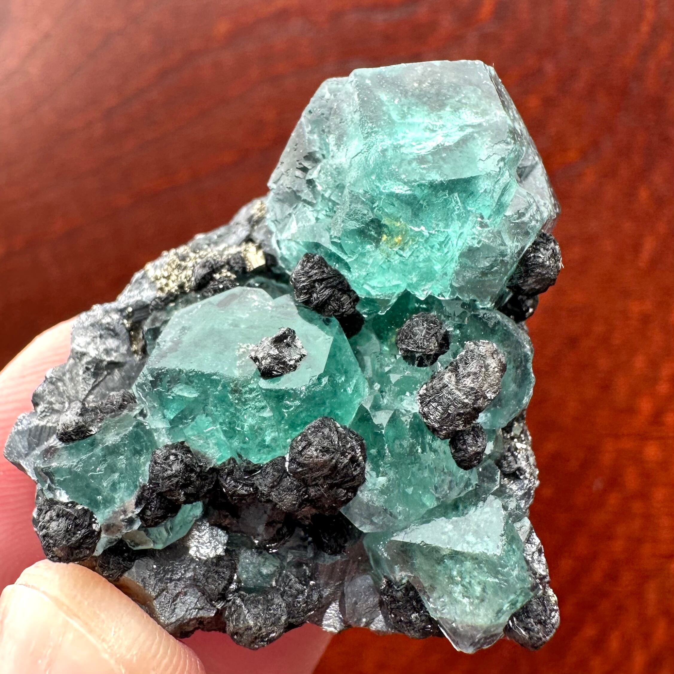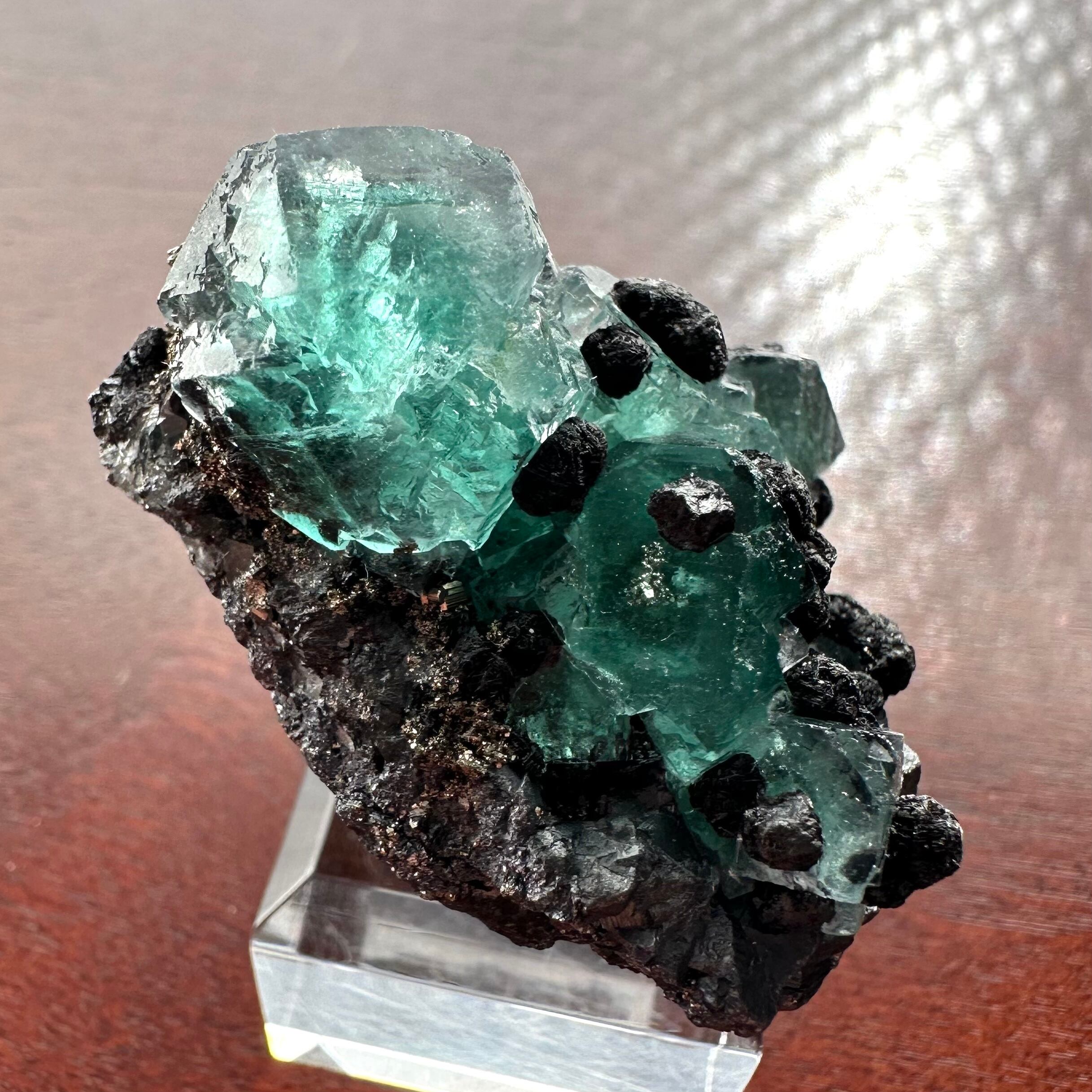 透明感があり、パイライトの内包具合もしっかりと確認できる良結晶で、ダメージはあれどそれを補って余りあるテリや発色を誇ります。