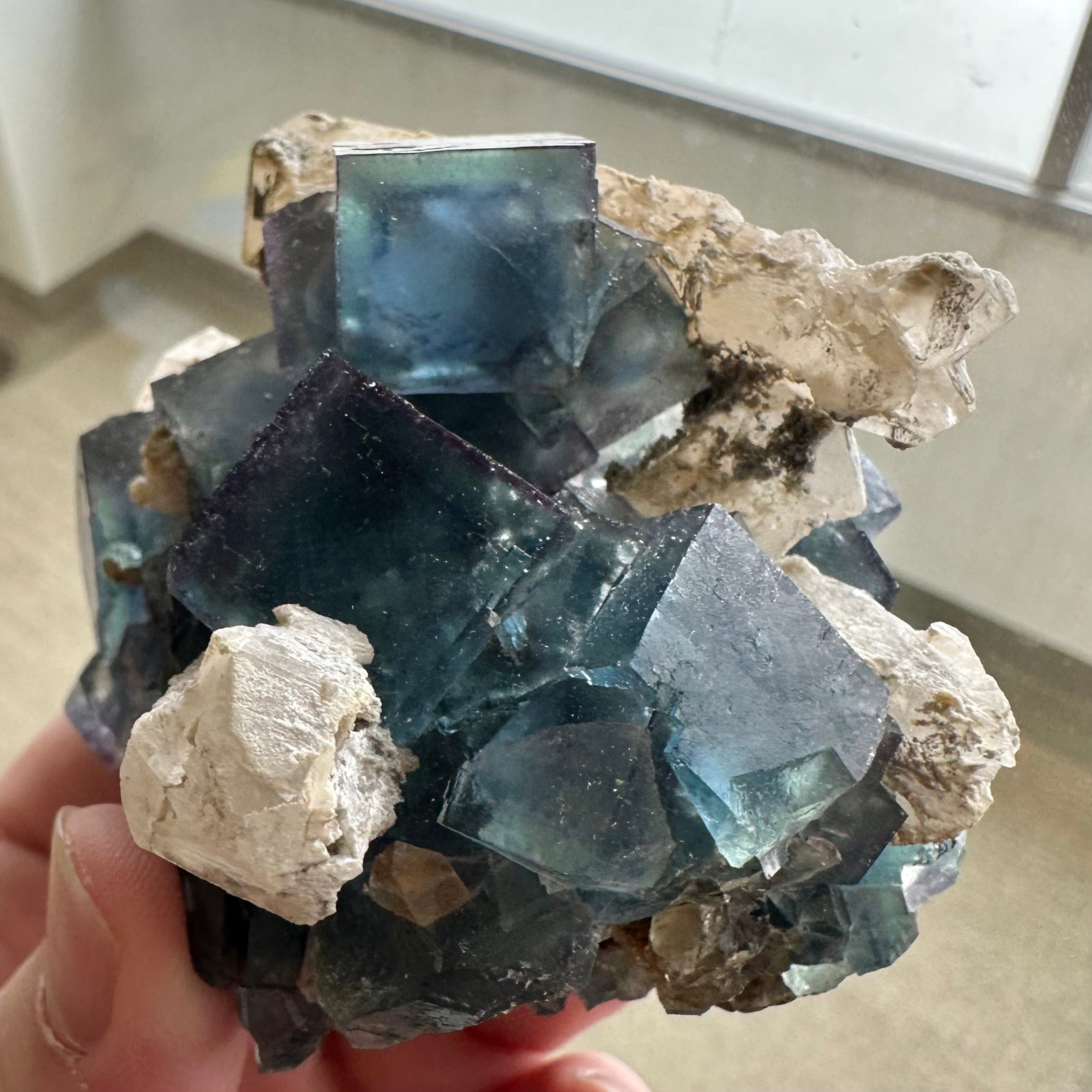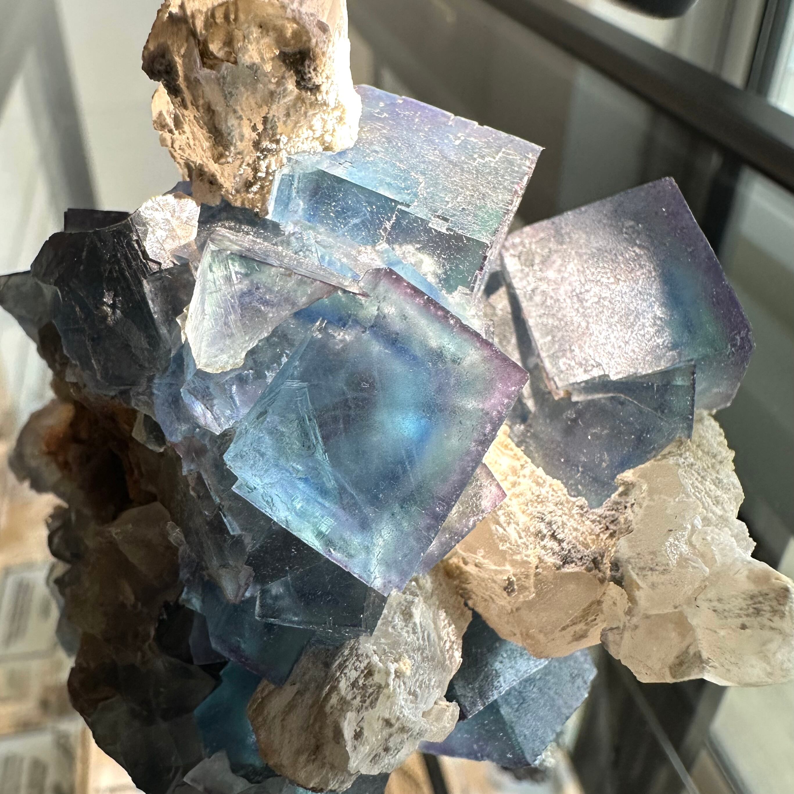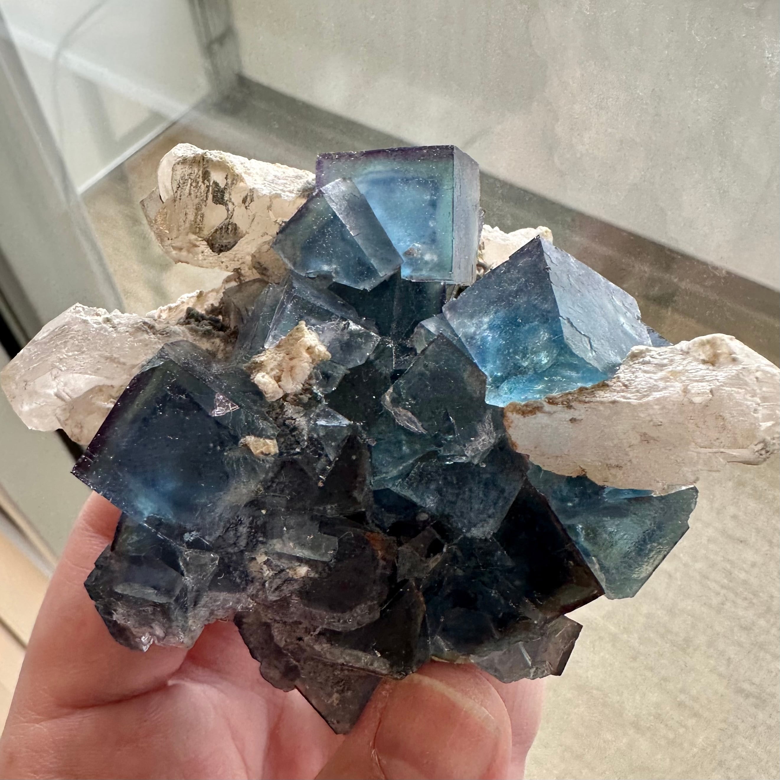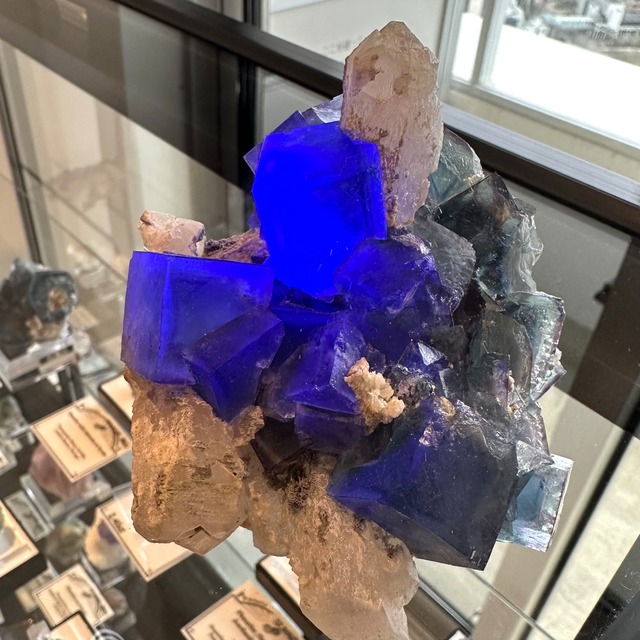 オコルスのブルーフローライト、クォーツとのコンビネーションが印象的な標本です。