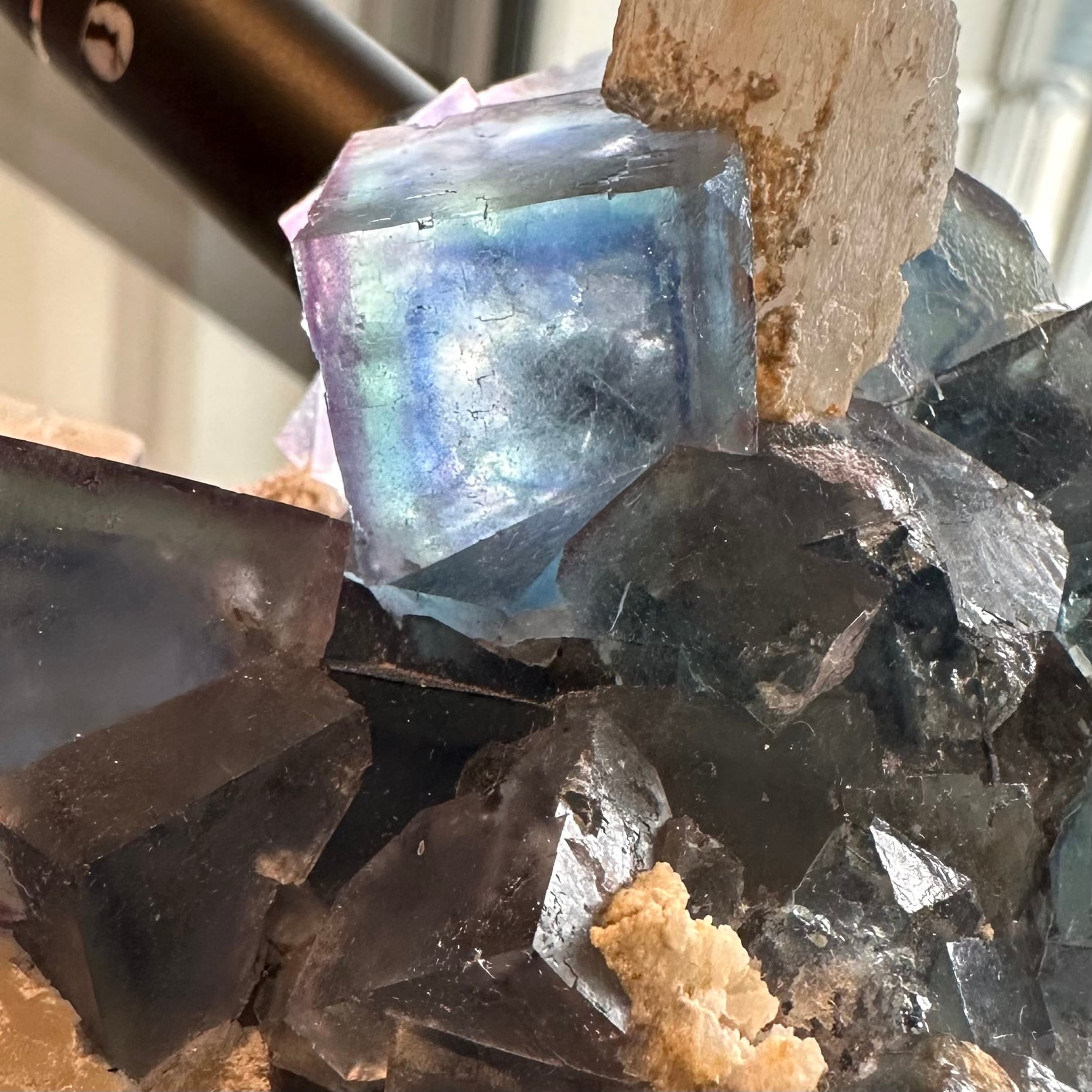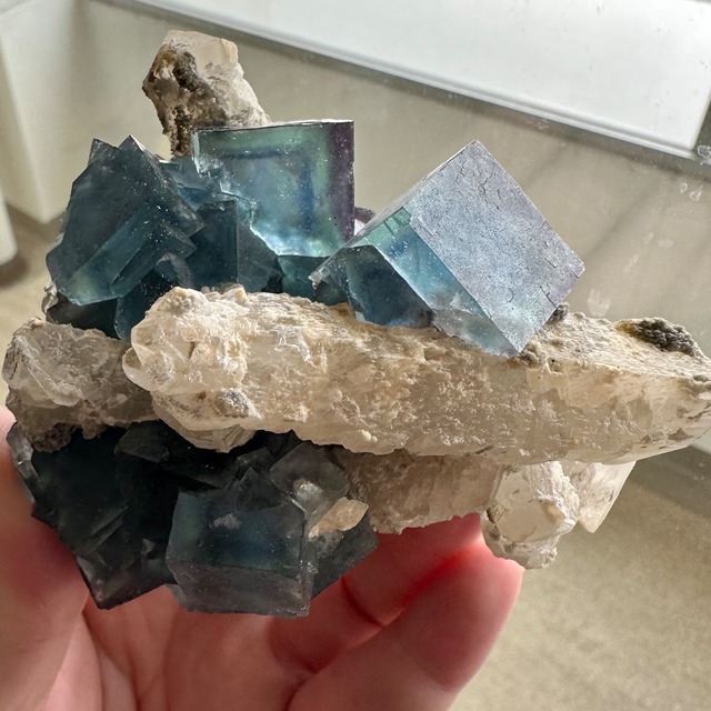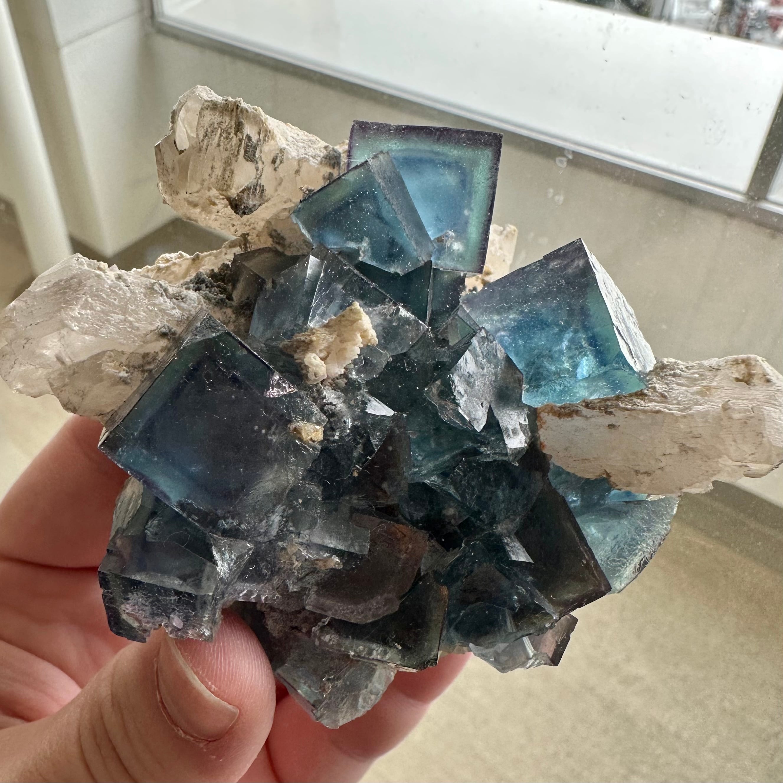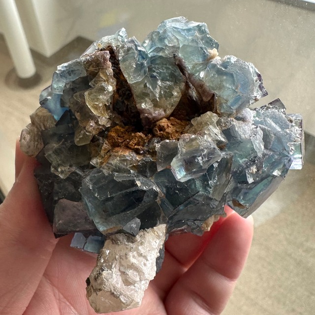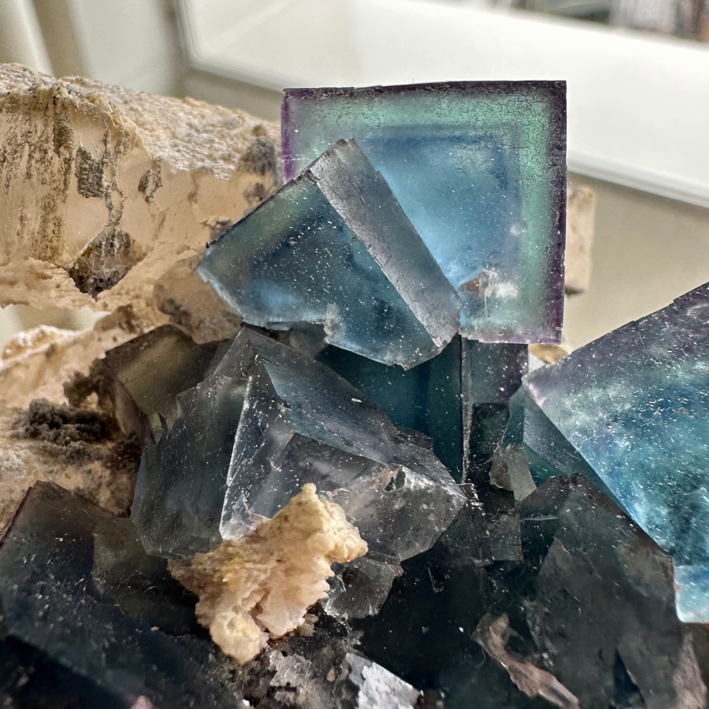 オコルスのブルーフローライト、クォーツとのコンビネーションが印象的な標本です。