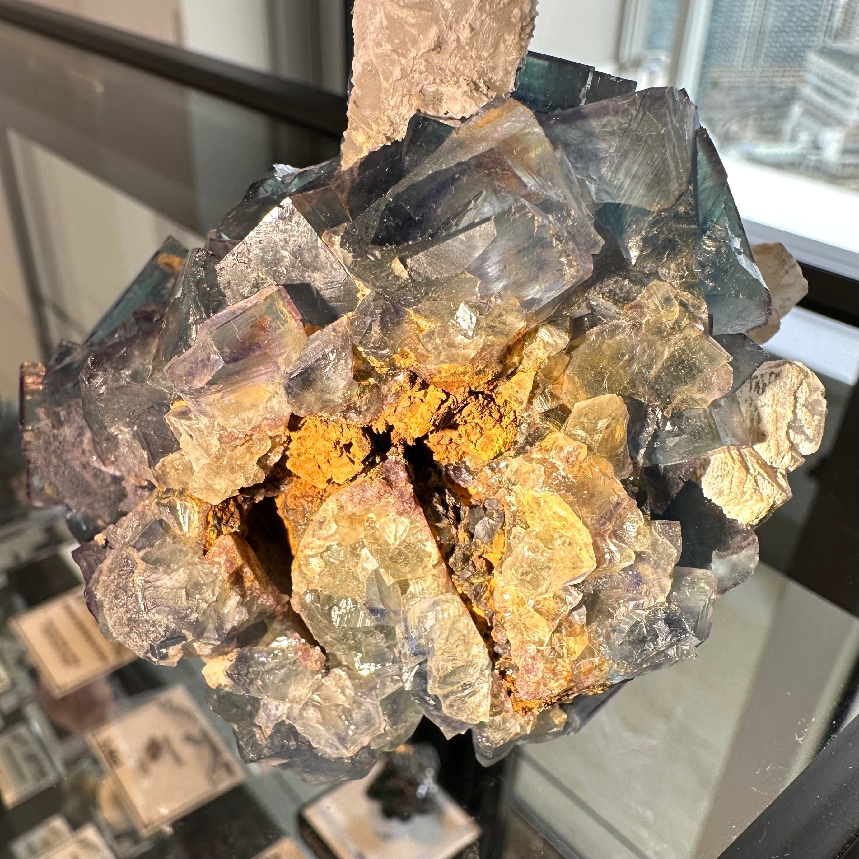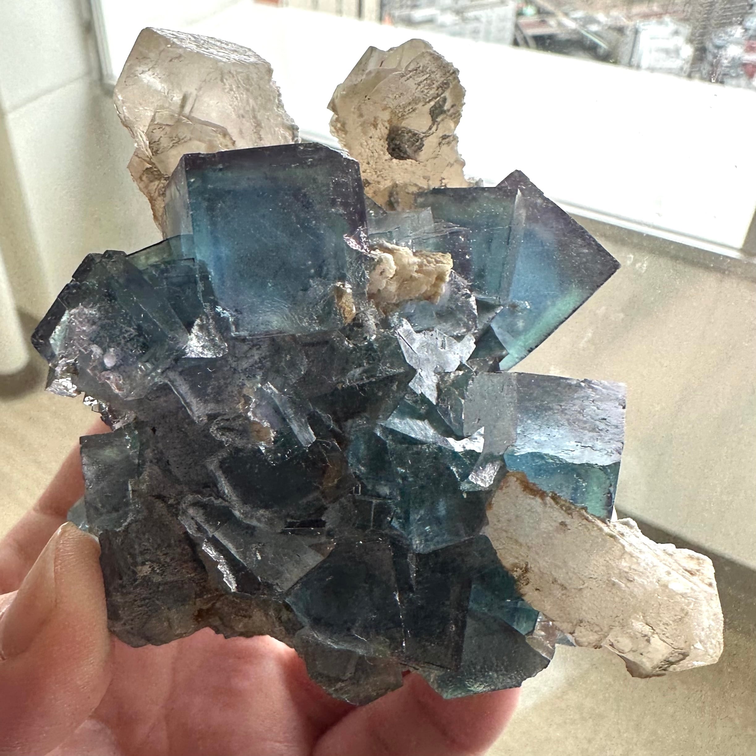 サイズ感があり存在感抜群のクラスターで、ブルーの発色も良好、透明感もしっかりと残す良結晶が複数確認できます。