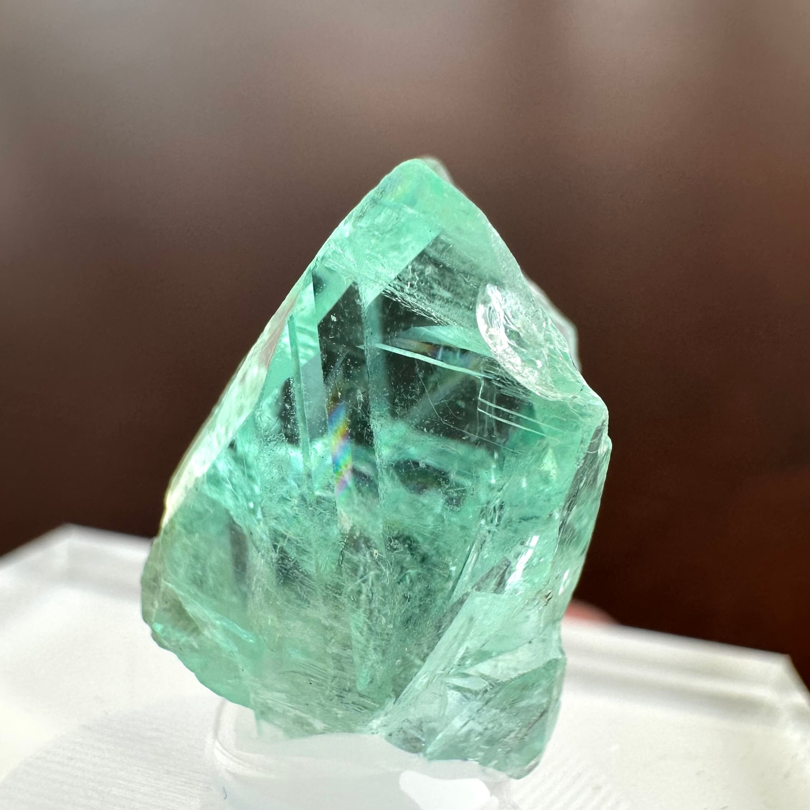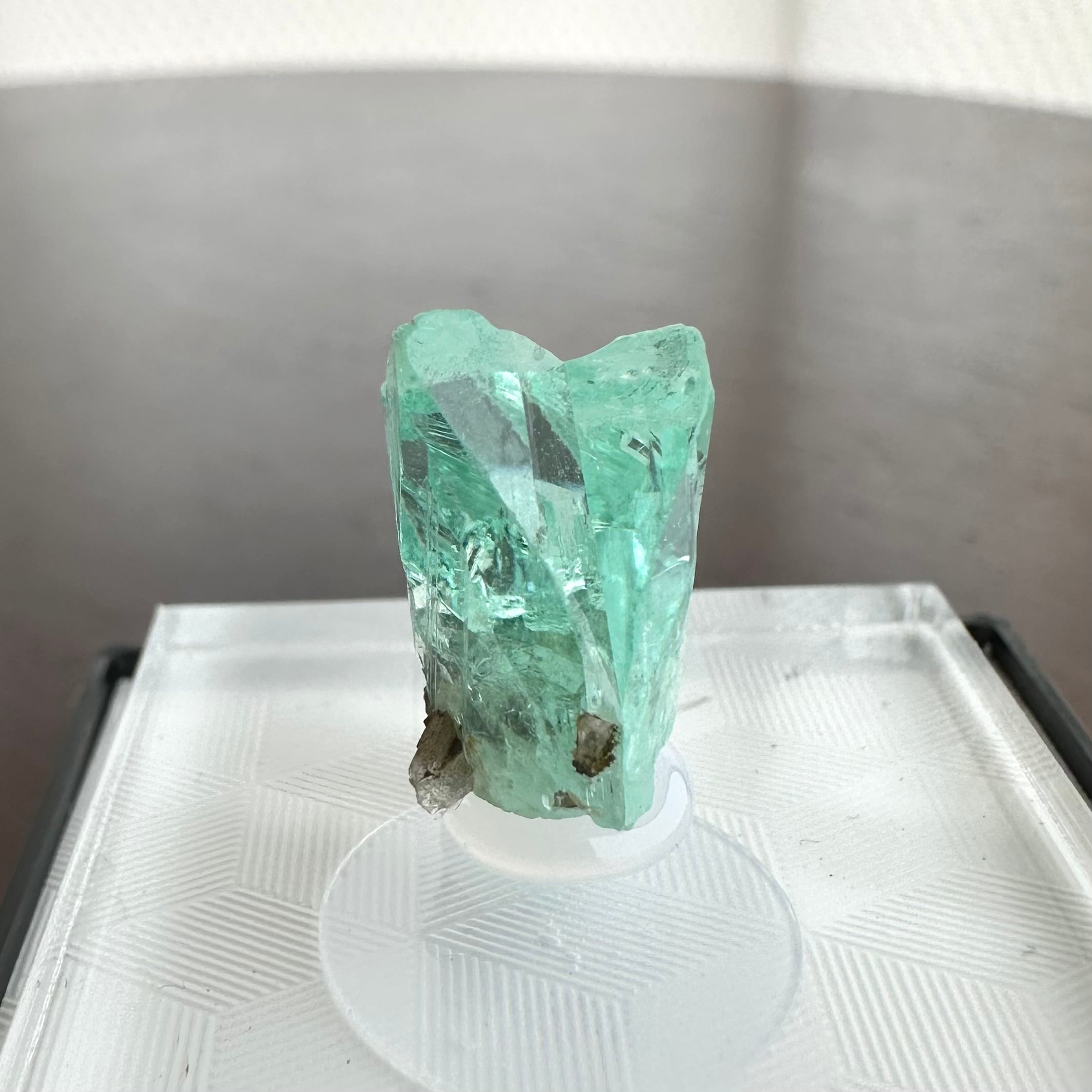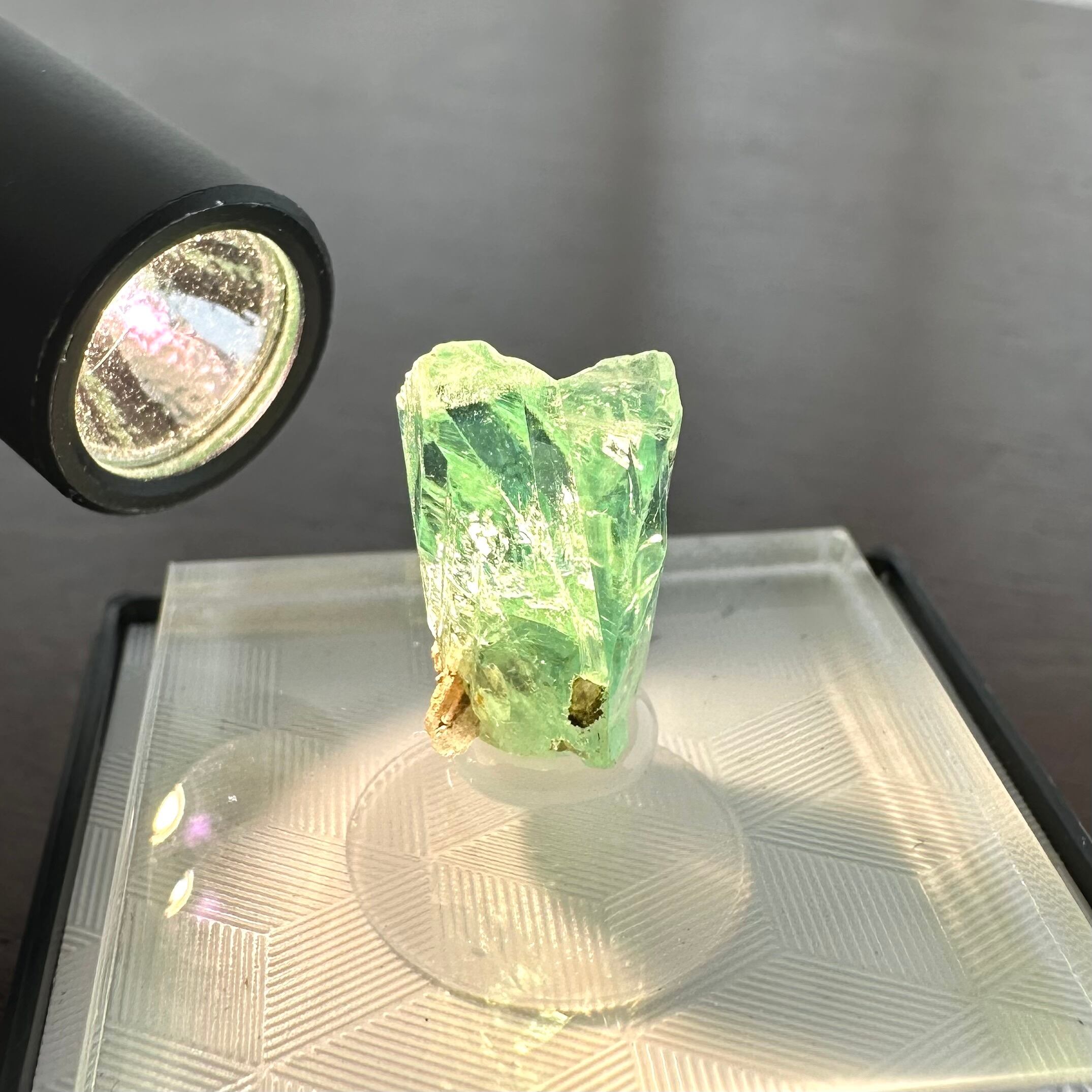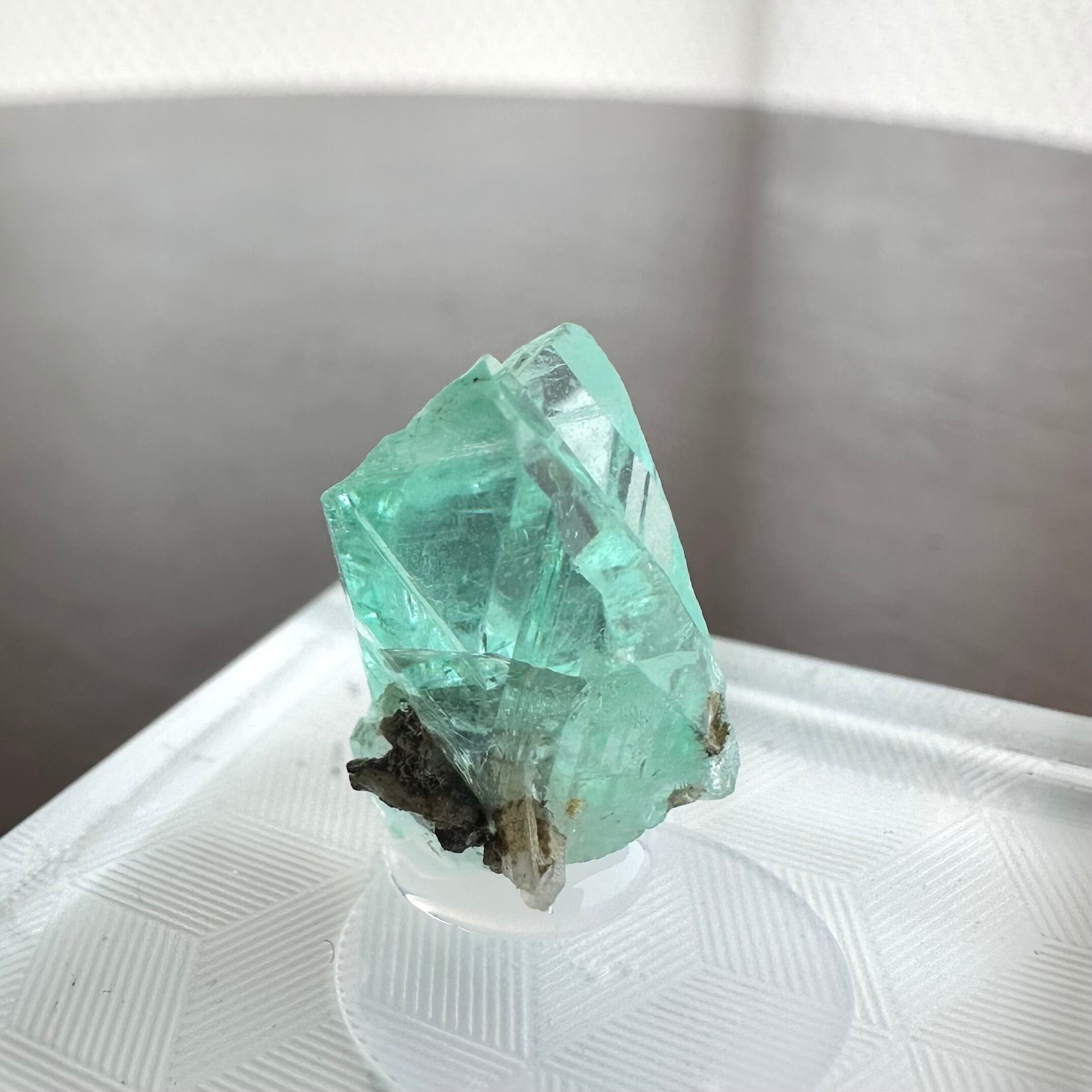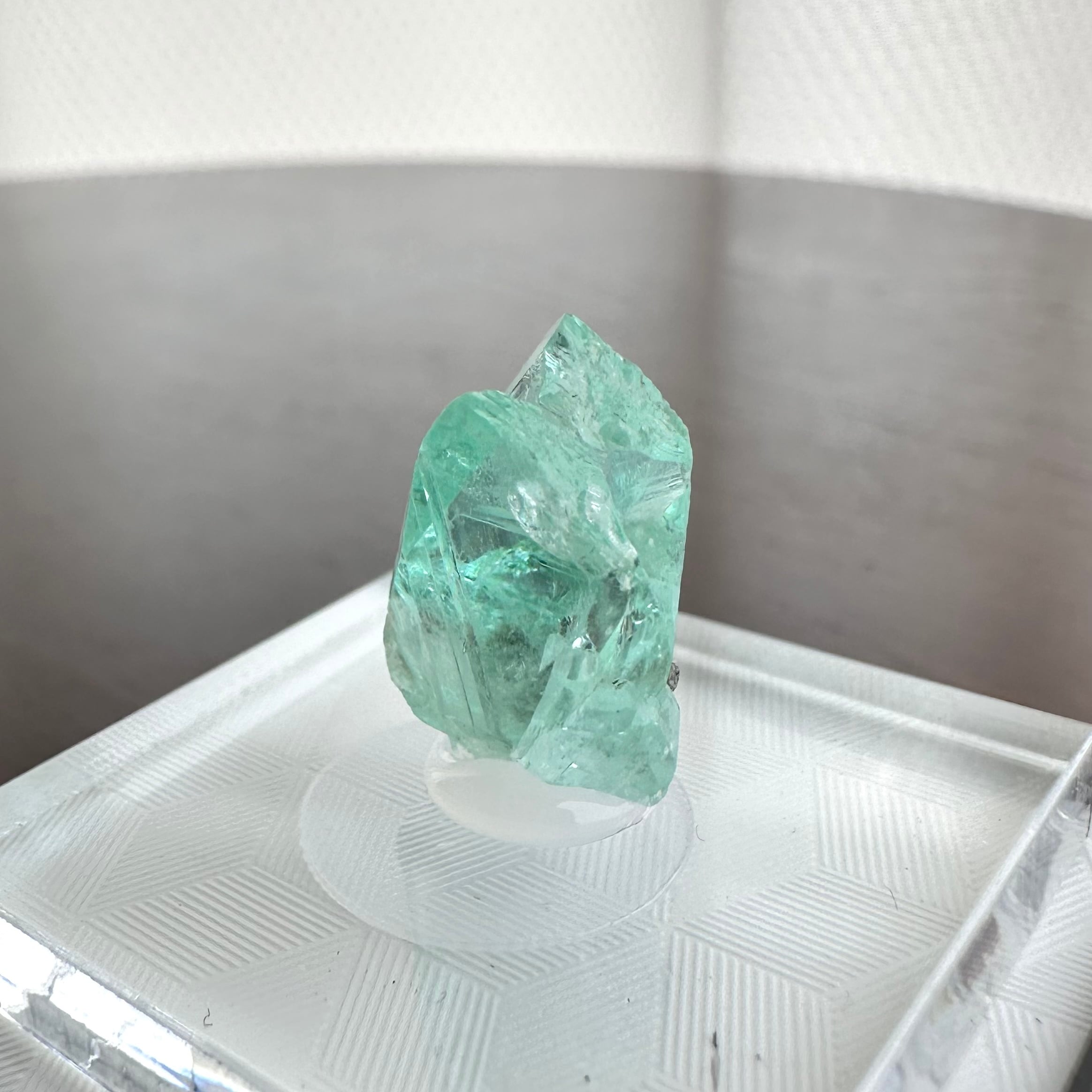 画像1枚目の撮影時の様な濃い発色に関しては室内かつ照明下のものですが、自然光下でもネオン感のある鮮やかなミントグリーンの発色が楽しめる良結晶です。