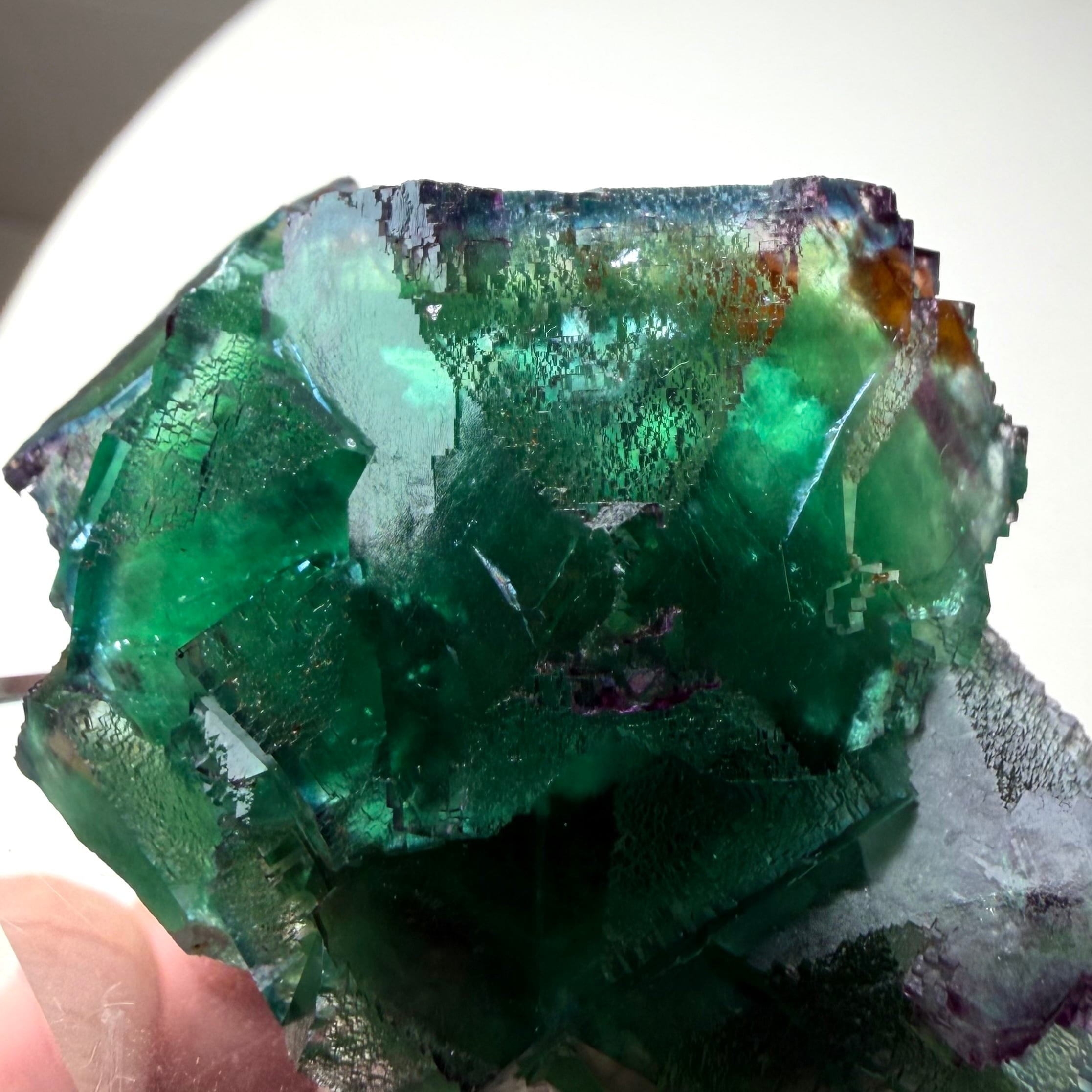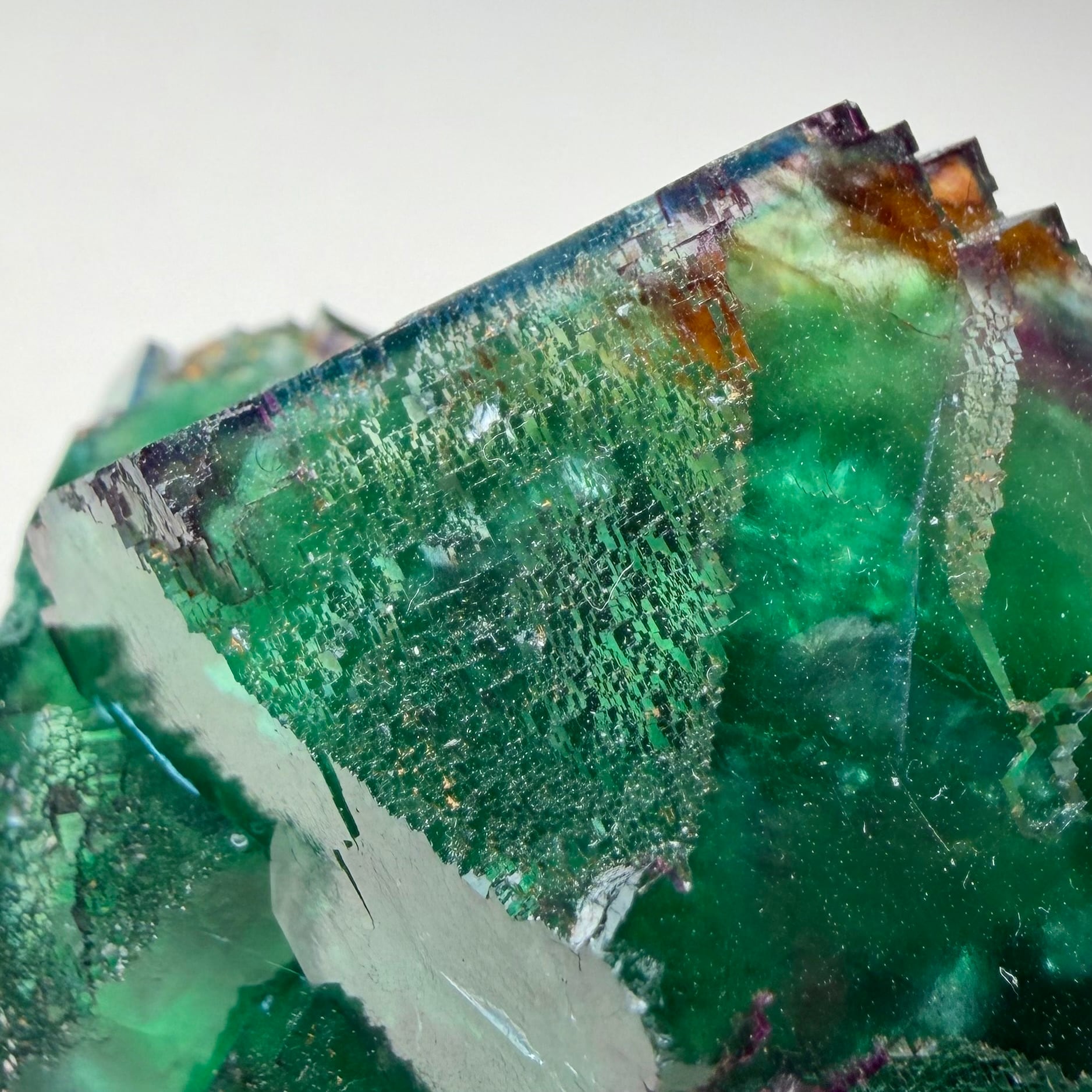 ファントムの入り具合やステップ状の結晶面がユニークで、角度によっては何となくスパイダーマンの顔に見える様な部分もあったりと、美しさとユニークさを兼ね備えた標本です。