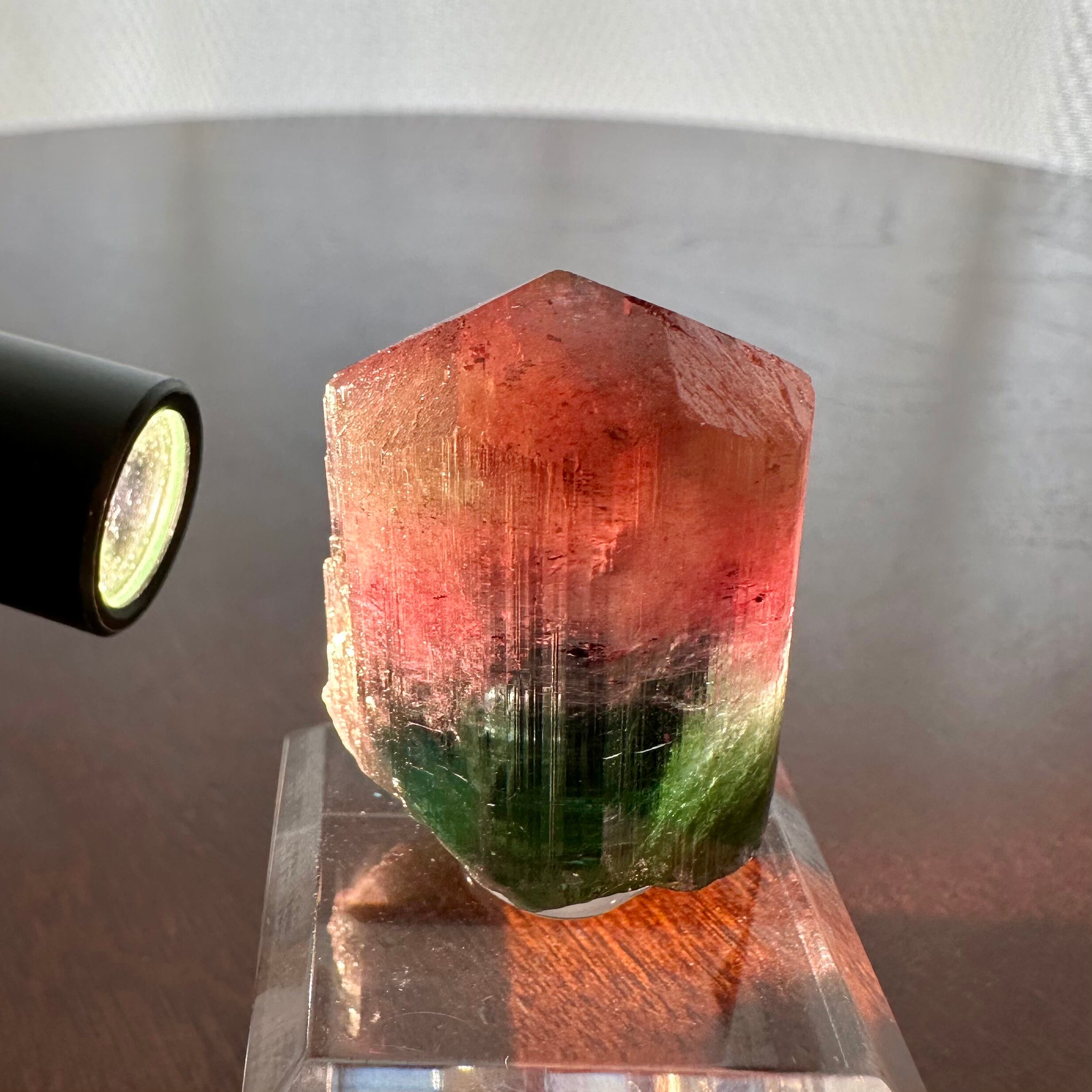 実際は、結晶上部はレッドのみではなくピンクやオレンジといったグラデーションが見られ、下部もブルーグリーンをメインにその濃淡やグリーンが見られるため、マルチカラーと言っても問題無さそうです。
