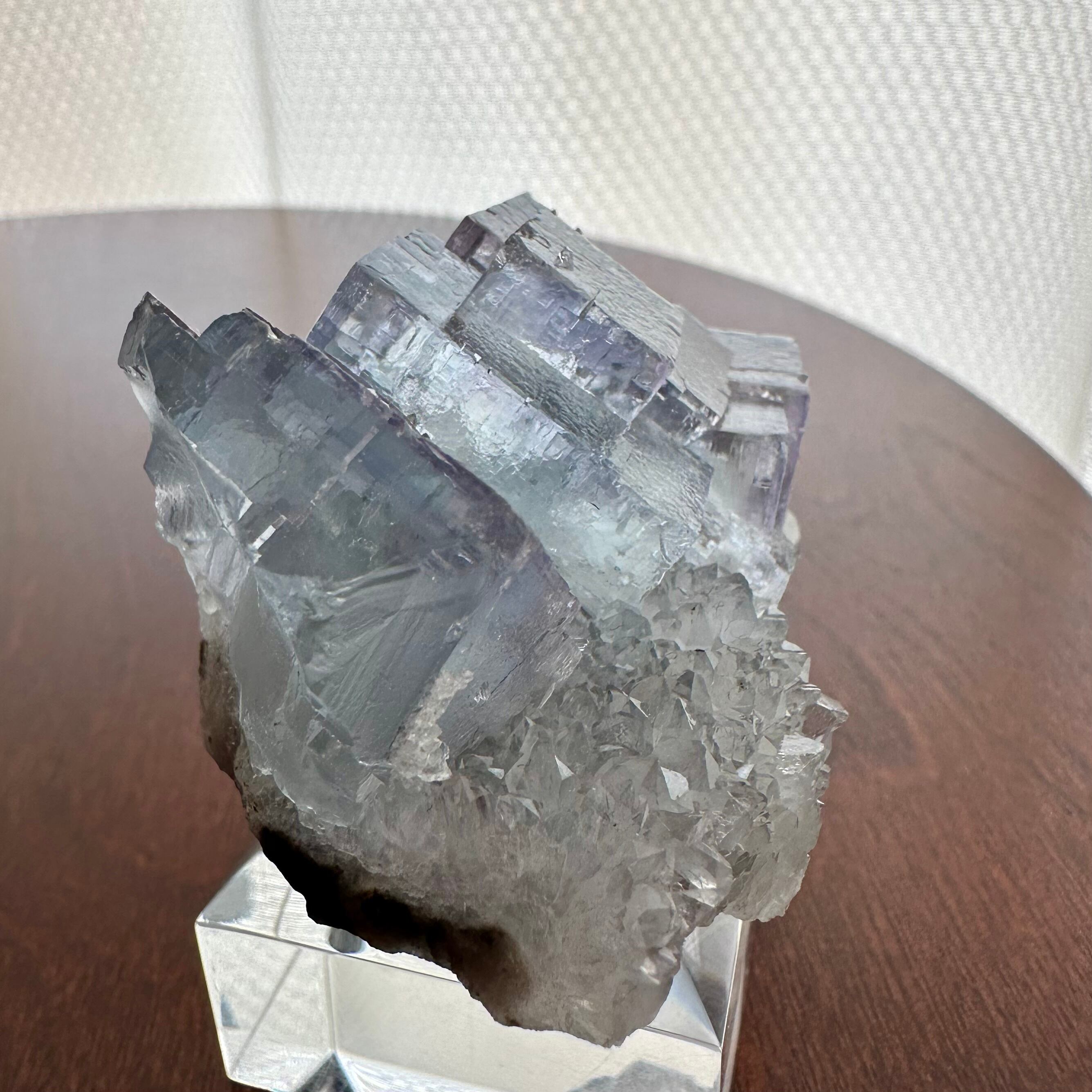 非常にクリアなクォーツと、淡いブルーでニアカラーレスとも言える発色のフローライトとのコンビネーションが見られる、スペイン産のクラスター標本です。