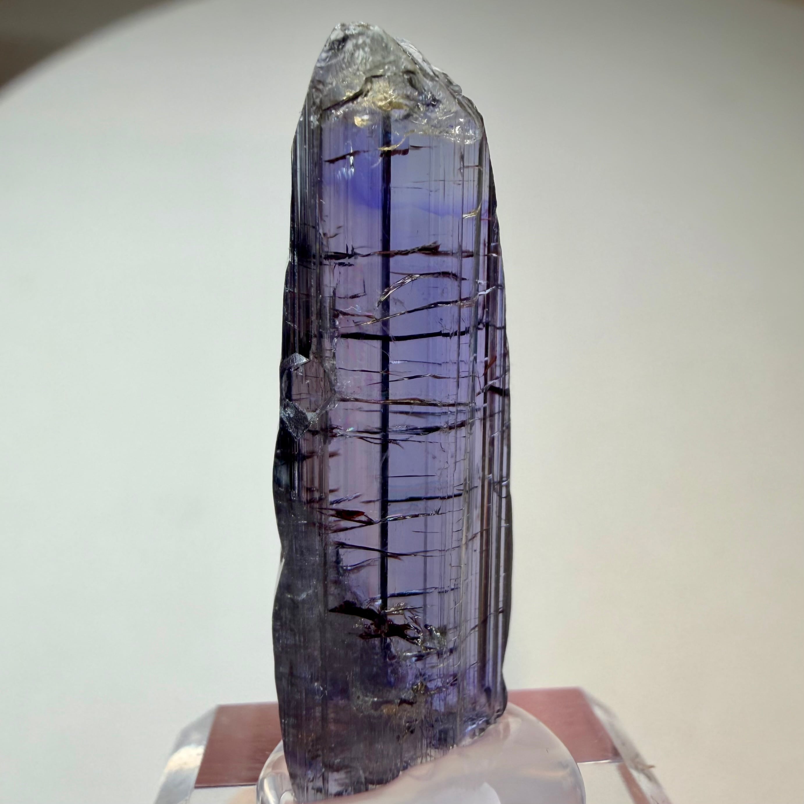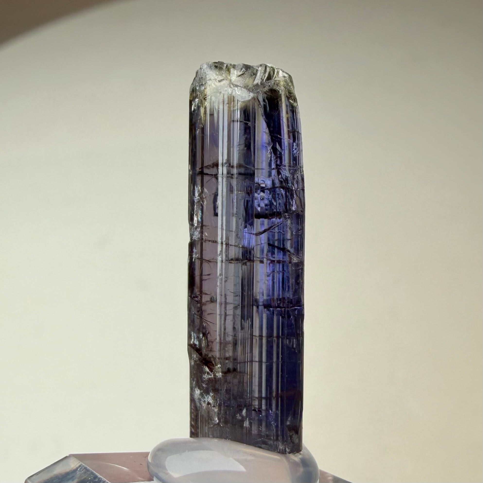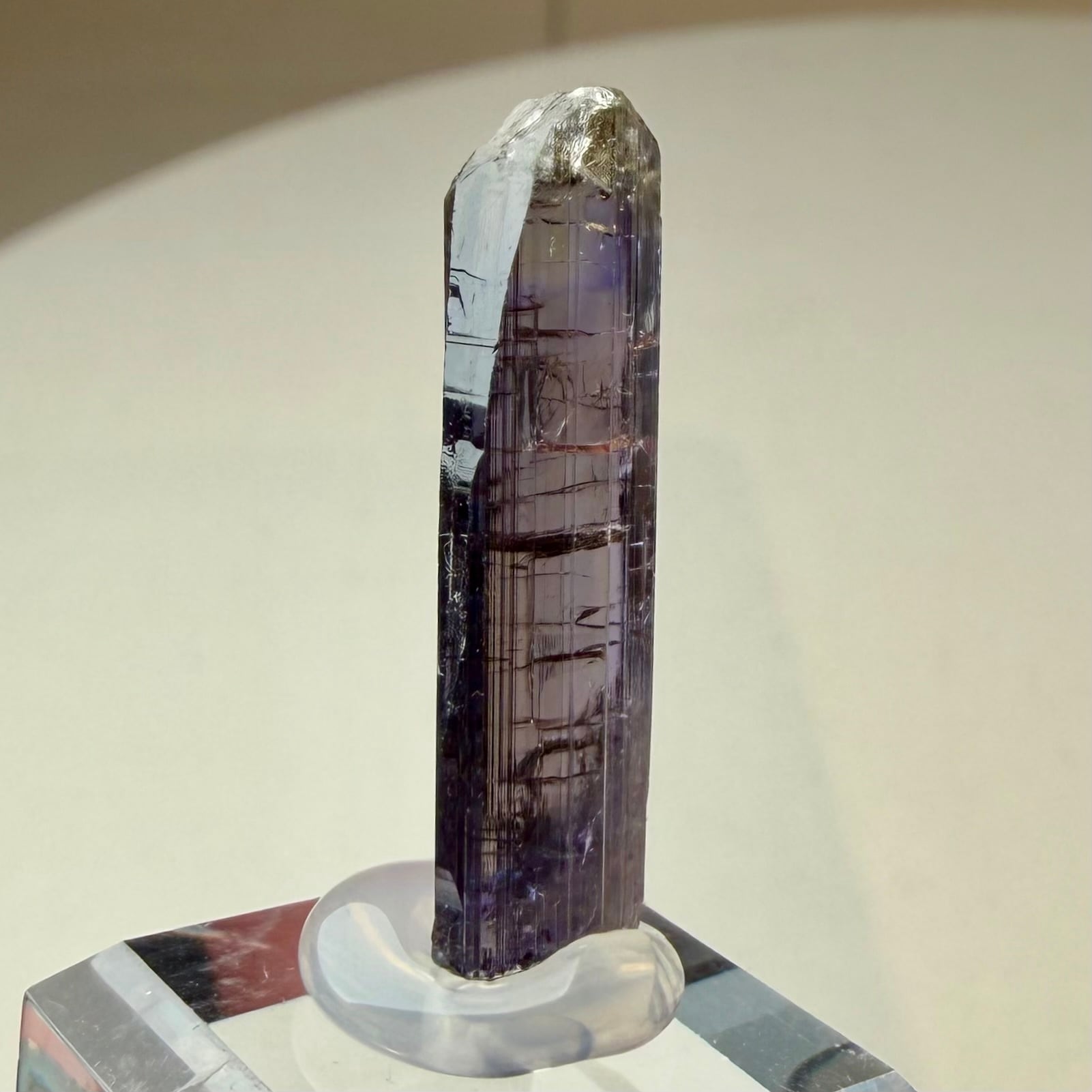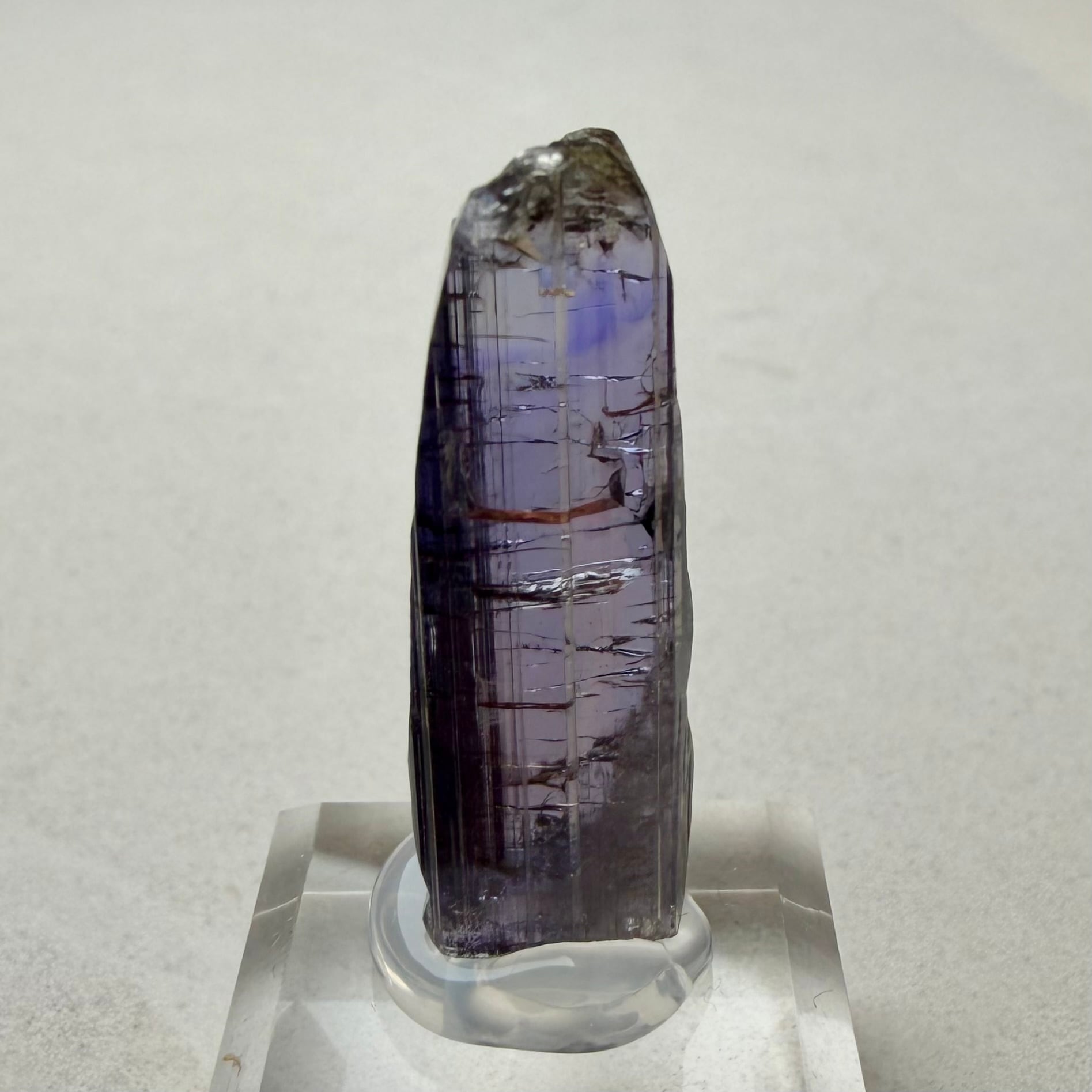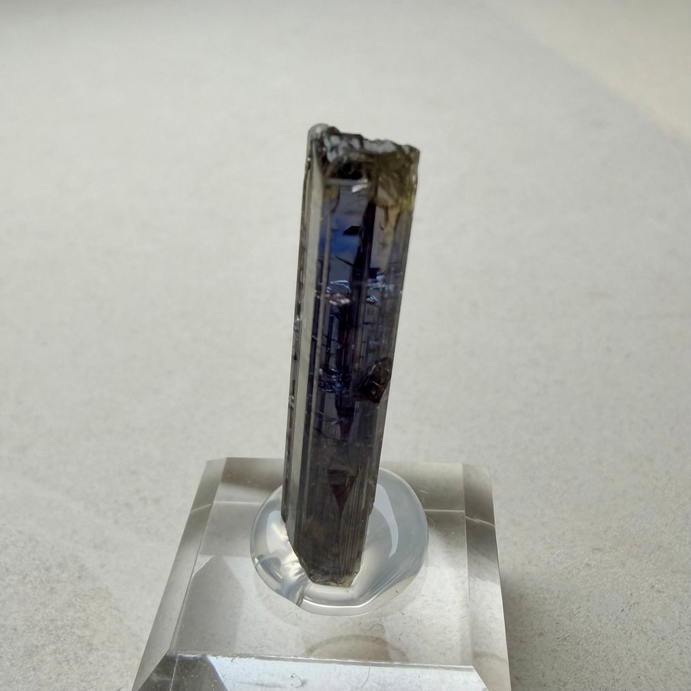 3センチ近くの高さがある細長い結晶が印象的なタンザナイトです。