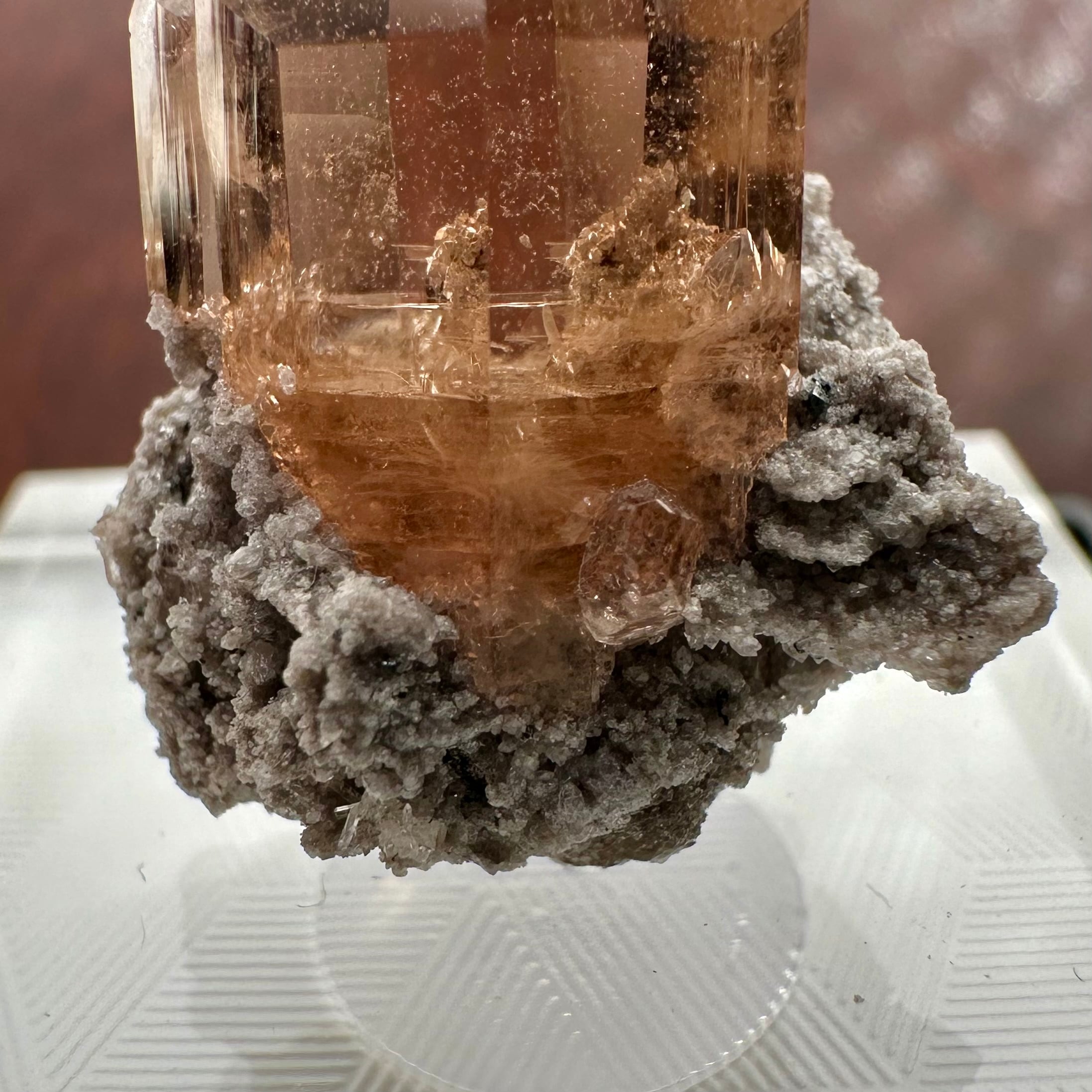 決してレアなわけではなく流通もある産地のトパーズですが、結晶の形状やサイズ、トパーズやその他との全体のバランス、透明感やテリといった結晶の質と、すべてが高いレベルで整い、サムネイルサイズのものとしてはトップクラスだと明言できるかと思います。
